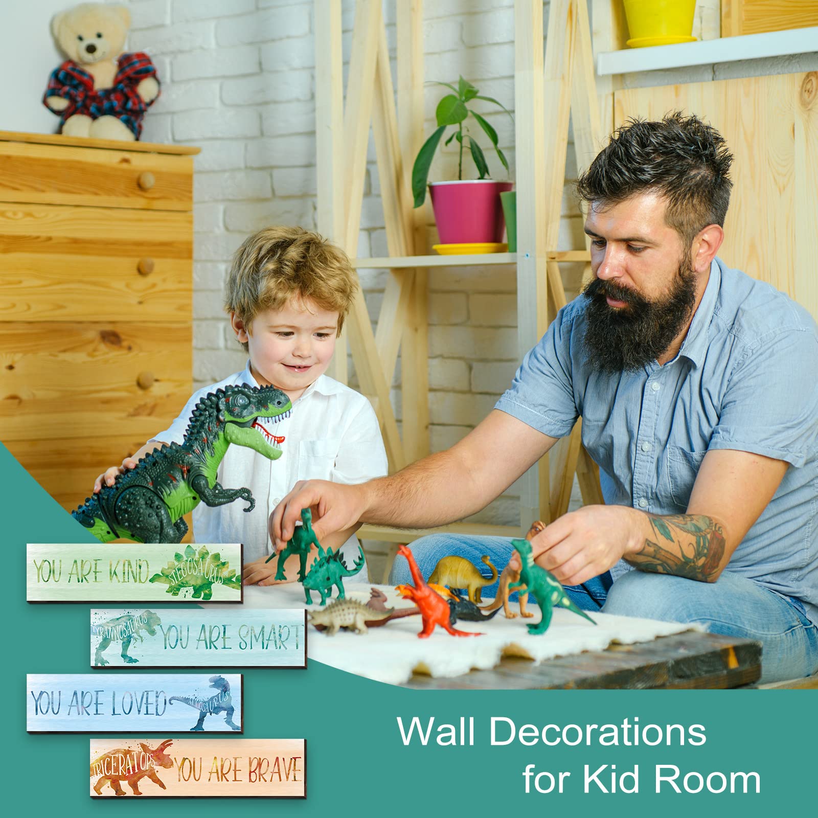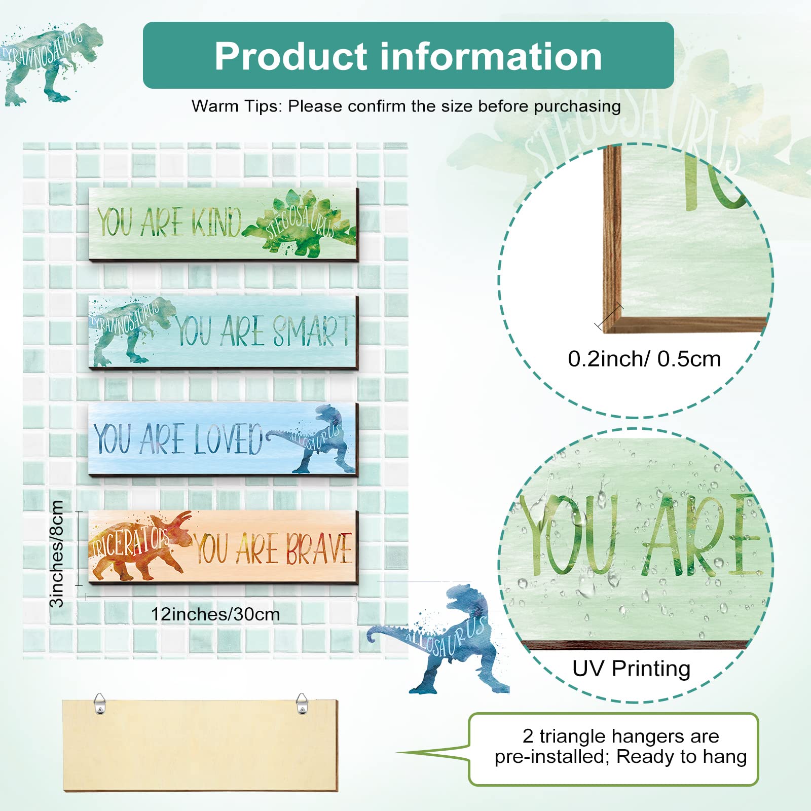 Inspiring Words Design: each decor measures approx. 12 x 3 x 0.2 inches/ 30 x 8 x 0.5 cm; And this dinosaur decor comes with different inspiring words, which can encourage you or your kids when you feel down, bringing you positive attitudes towards life, making your child life colorful
