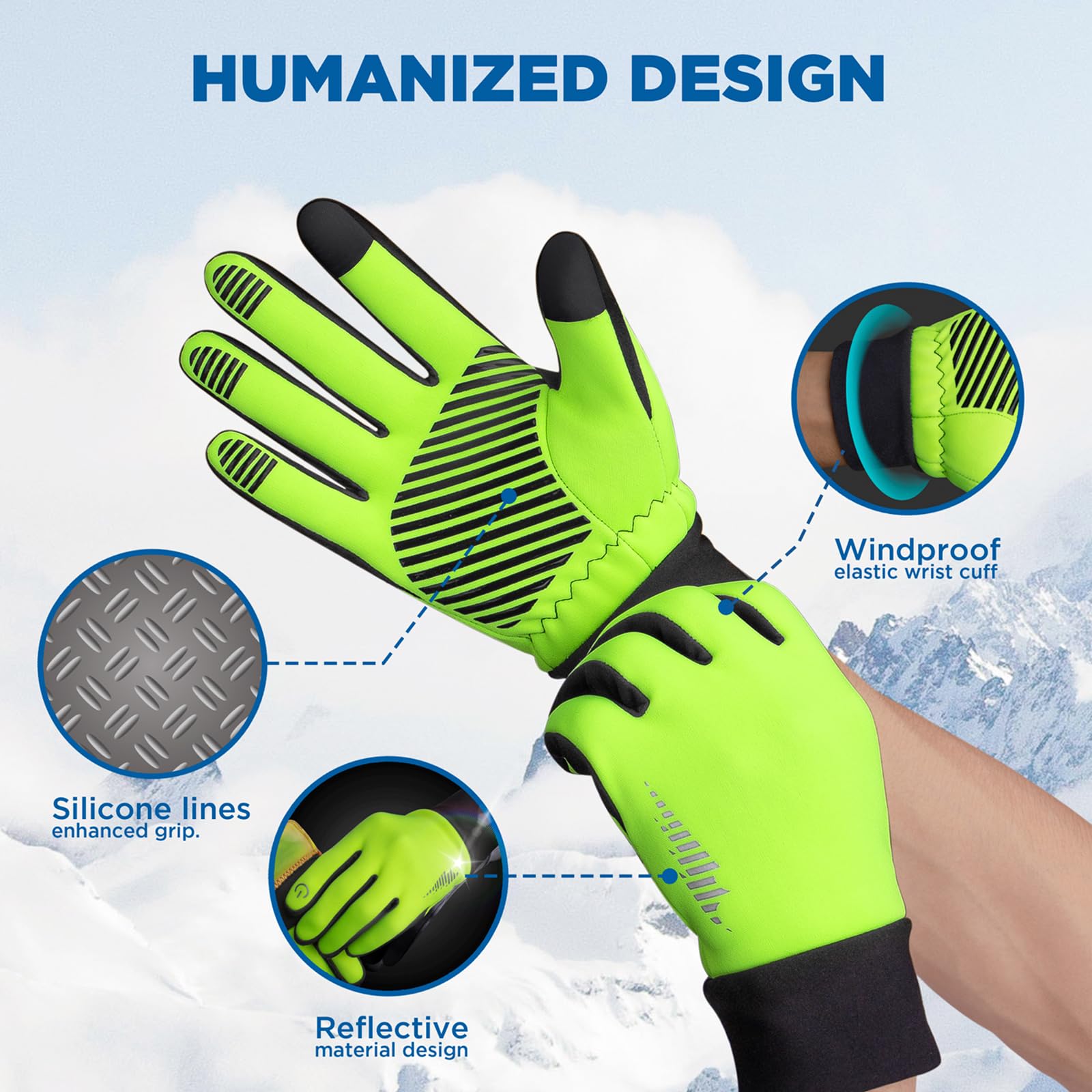 【No-slip & Humanized Design】Coming with enough silicone particles on the palm and fingers, which effectively increases the grip strength and abrasion resistance of the thermal gloves. Let you grip any tool firmly. And there are reflection patterns on the back of the gloves.It can reflect light and improve the safety of cycling at night.