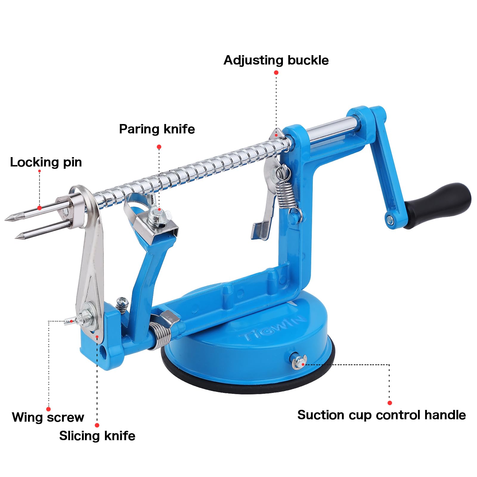 Coring/slicing blade can be removed for potatoes