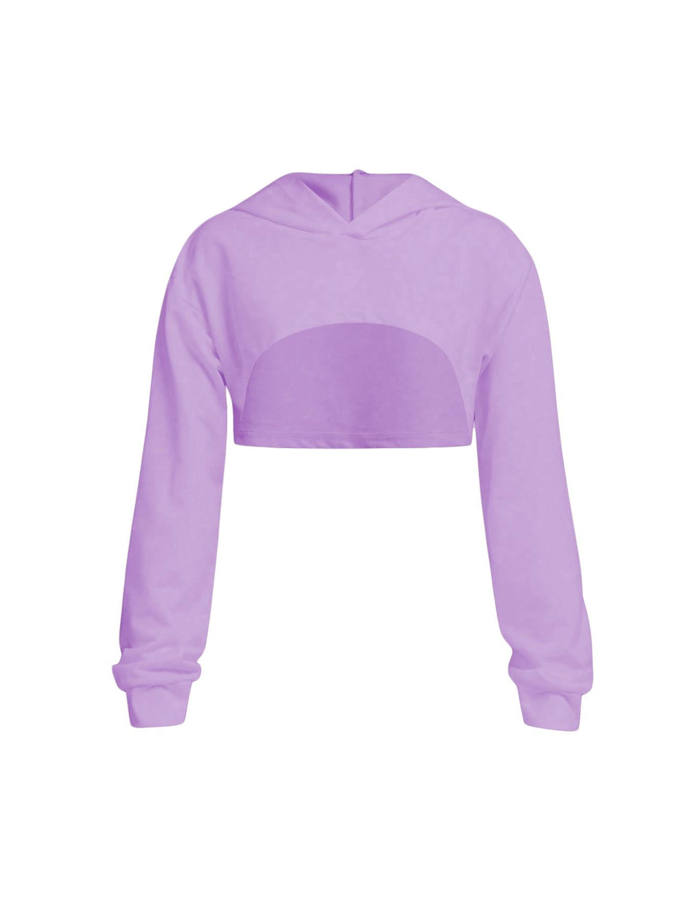 Design: Drop shoulder, pullover, long sleeve, hooded, high low asymmetrical hem, solid color, cropped length, solid color, casual style