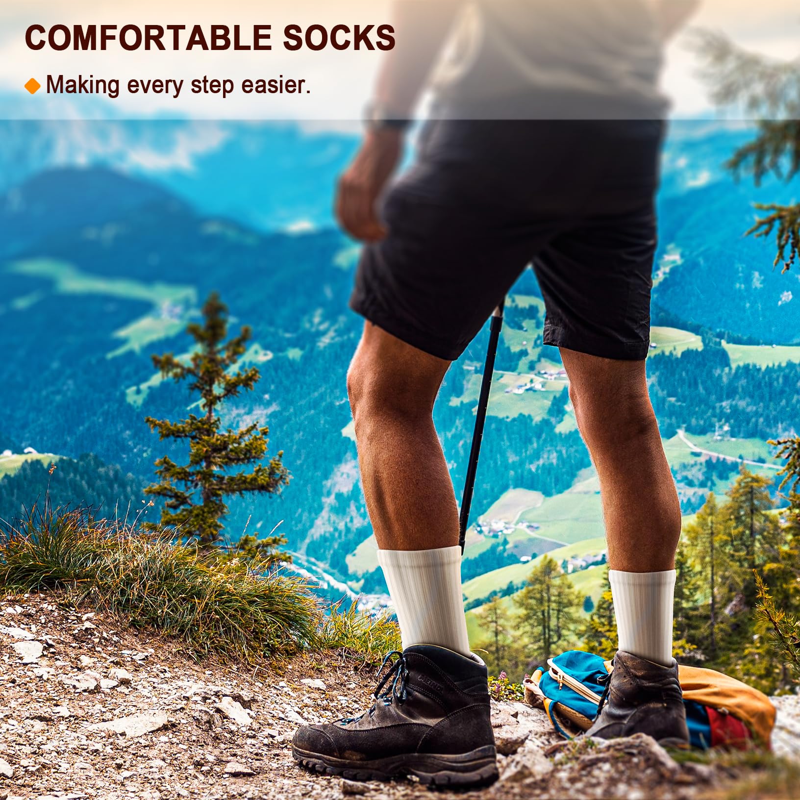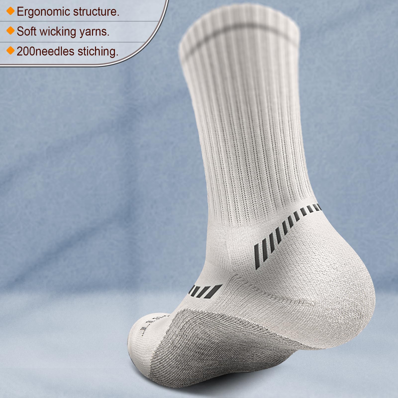 BREATHABLE--High efficient wicking yarns makes it quick moisture taking,the ventilation channels enhance its air flow,these socks can keep your feet dry all the day;