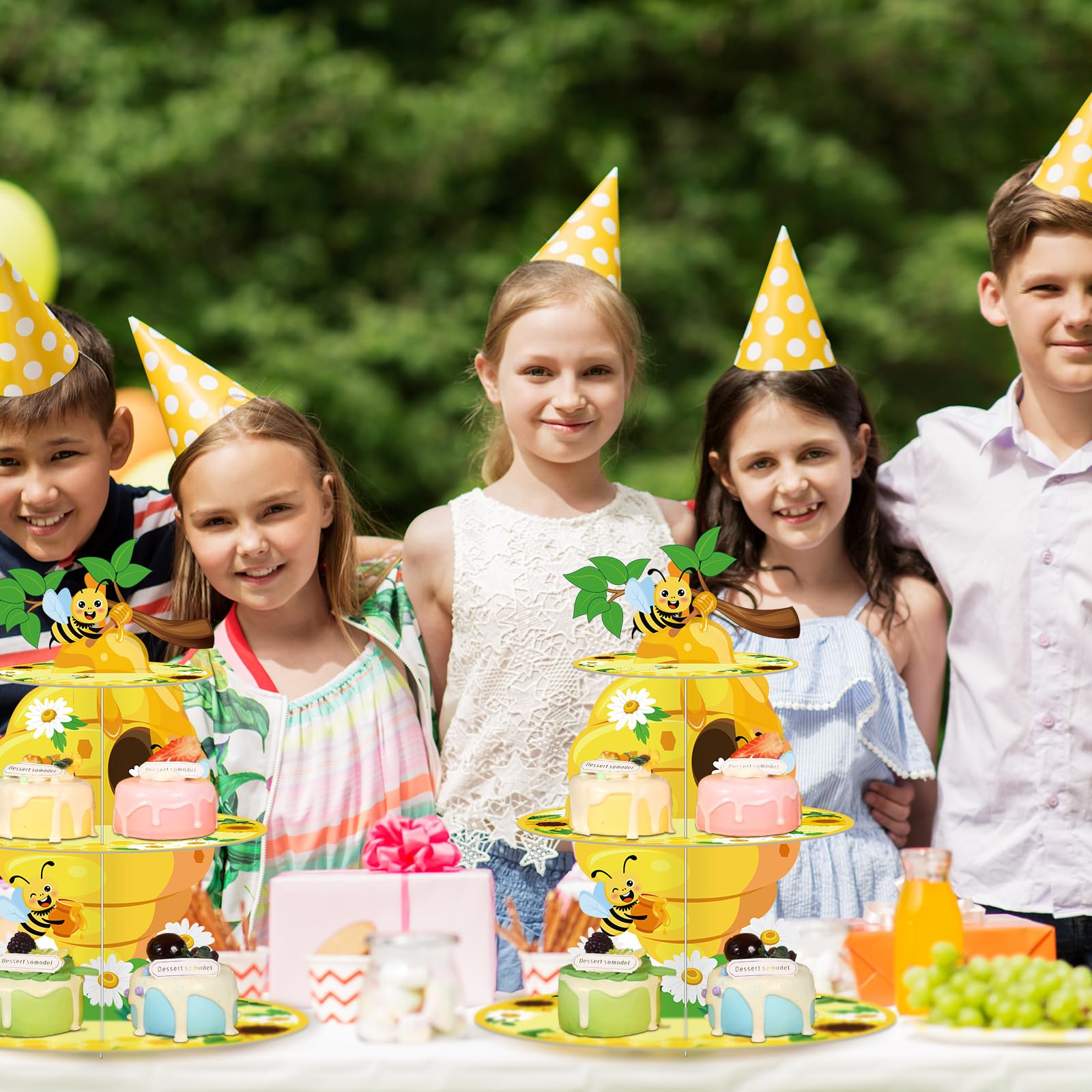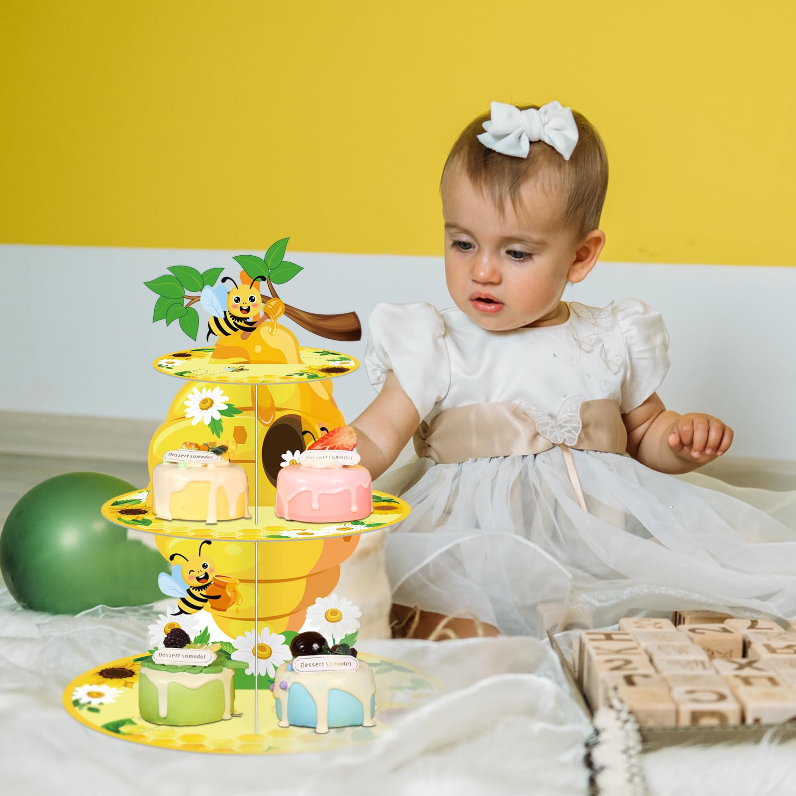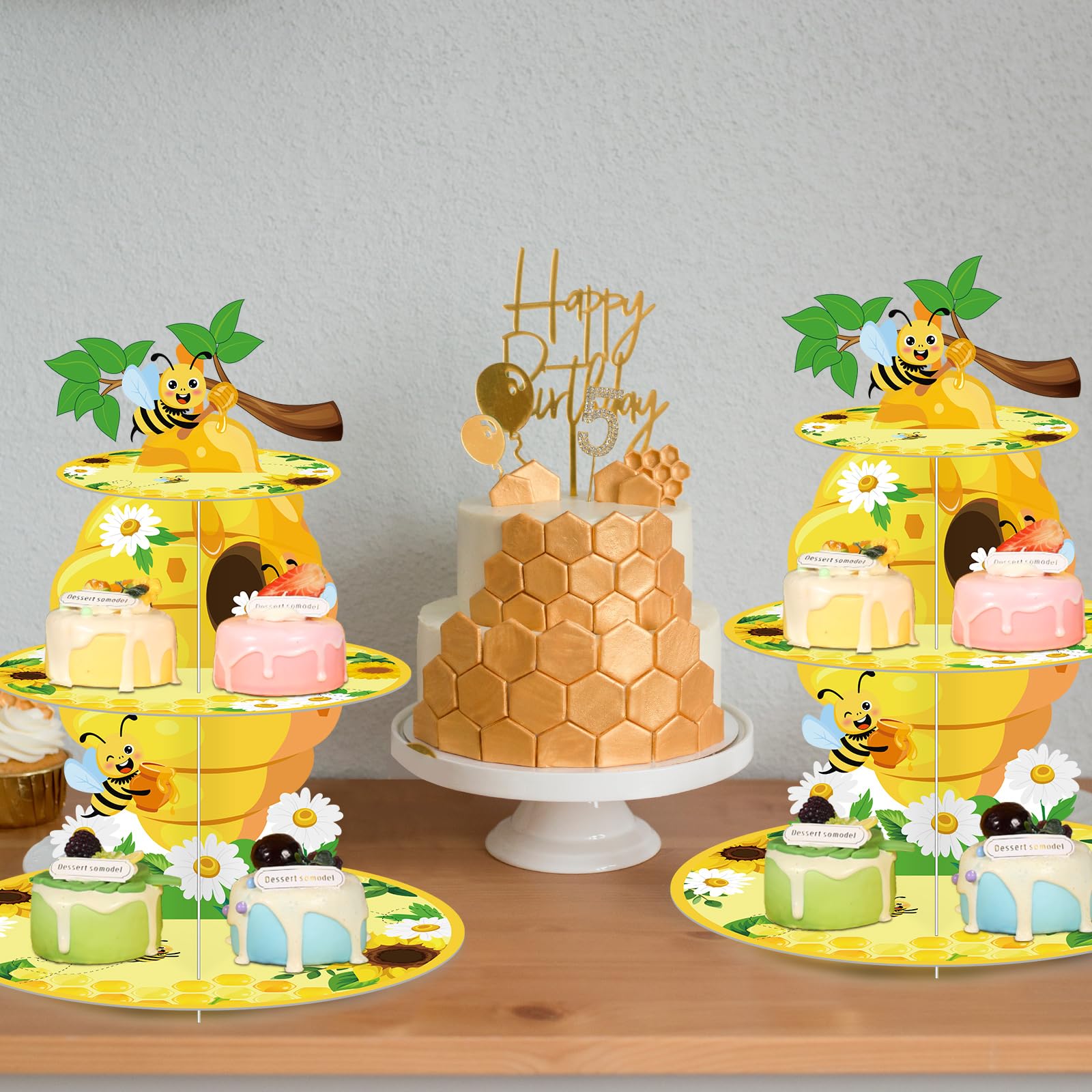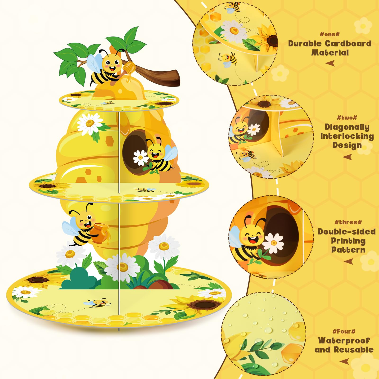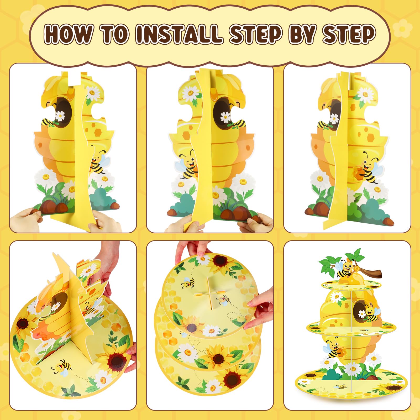 Easy to Use: our bee dessert tower party decorations is no need to use any tools during assembly, you can refer to the assembly steps on the picture, thick cardboard is fixed between every two layers of cake stands, the groove cut matches the cardboard cut, easy to disassemble and store to save space