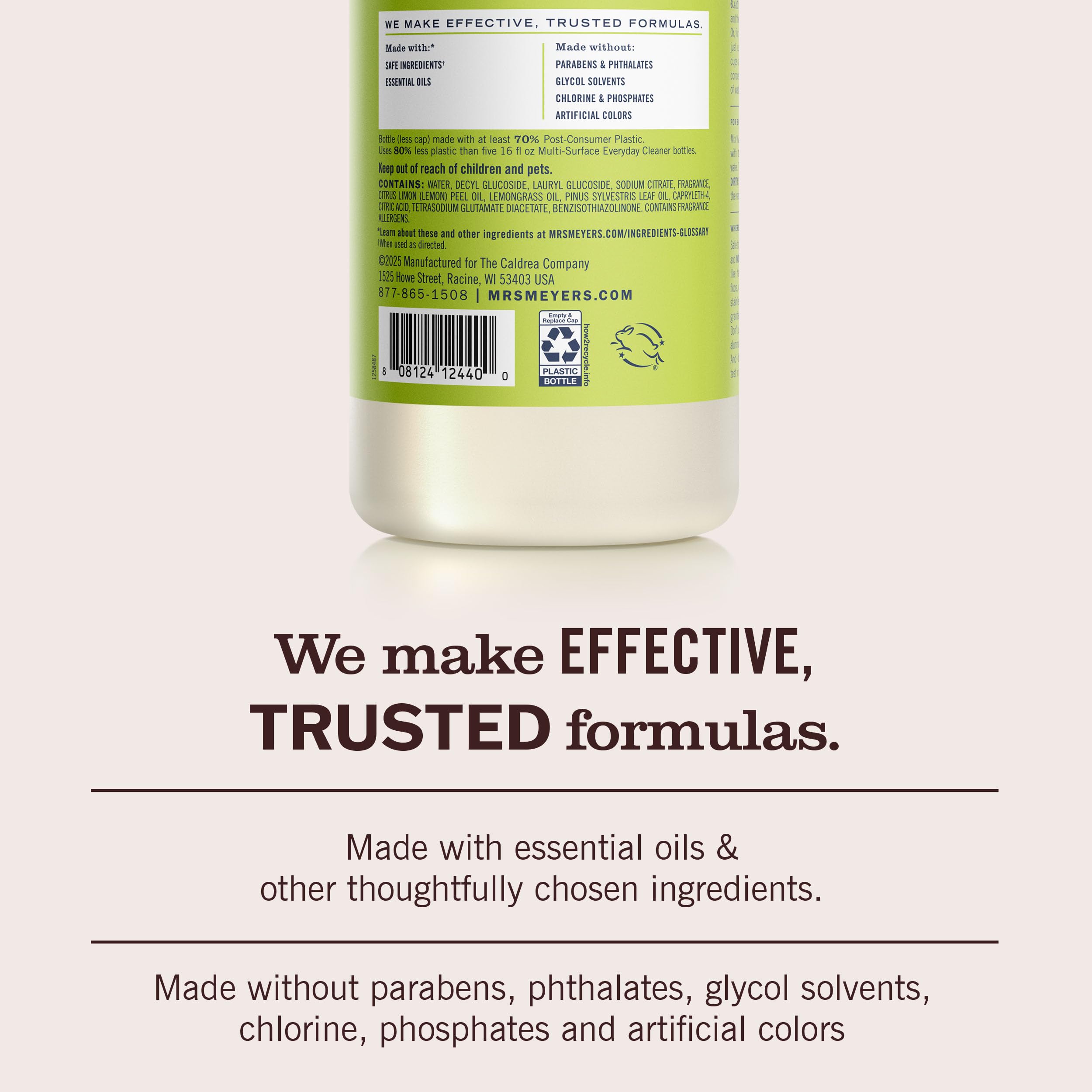 FOR MESSES BIG & SMALL: Big messes: Dilute with water to create a powerful cleaner—makes up to 16 gallons. Tough messes: Use full strength, let sit, then wipe away. Daily messes: Mix with water to refill Mrs. Meyer’s Multi-Surface Everyday Cleaner—enough for 5 refills.