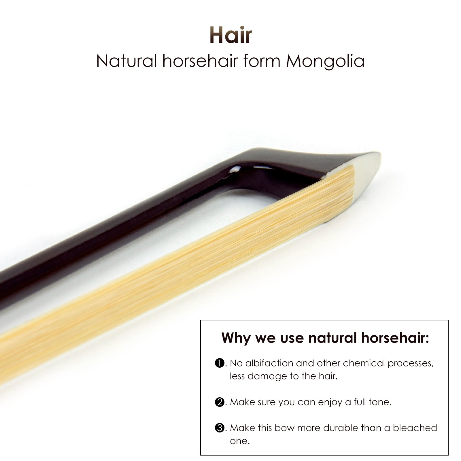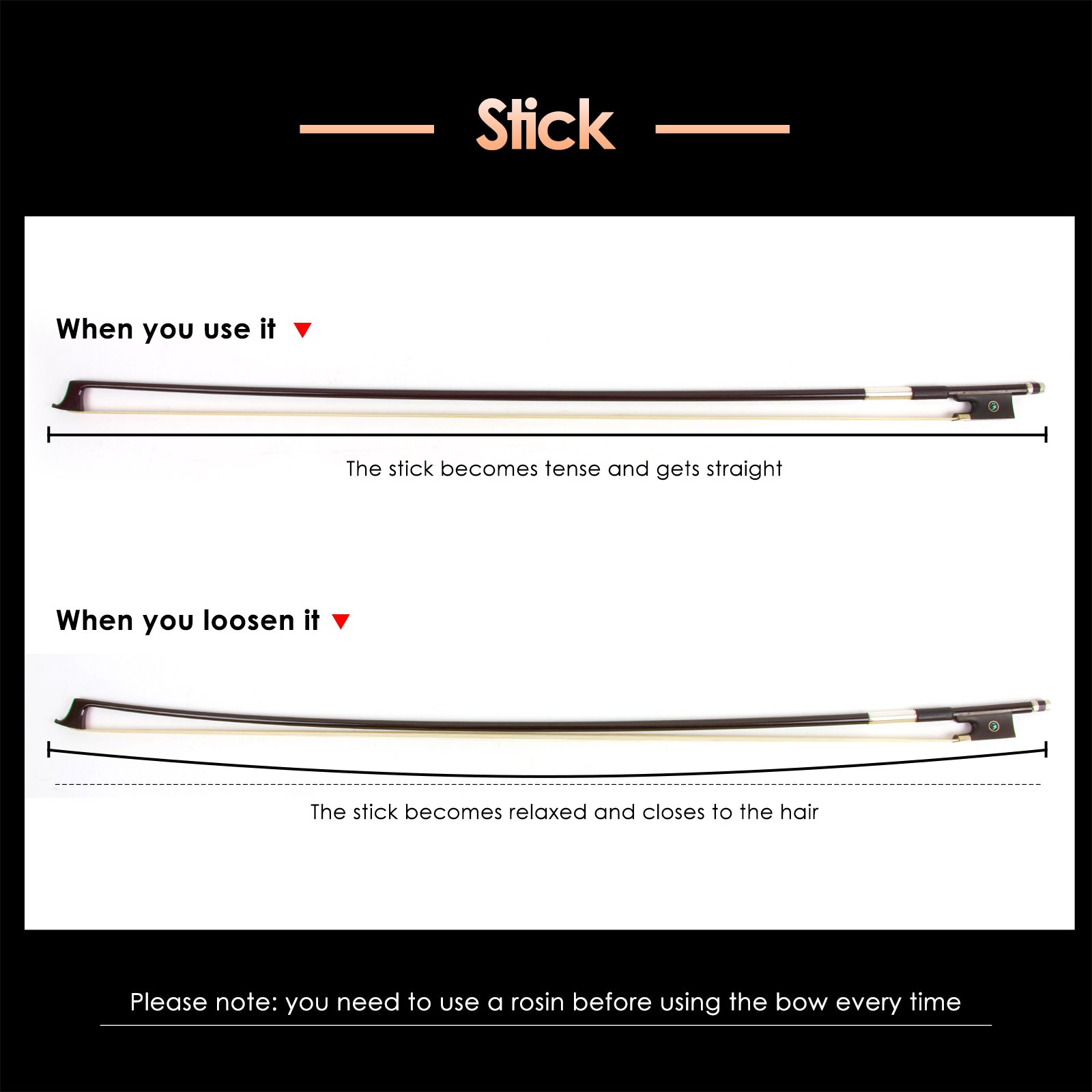 This violin bow looks great,thanks to an eye-catching abalone inlay and Parisian eyes.It is resistant to temperature and humidity, allowing you to play anywhere without any adjustment