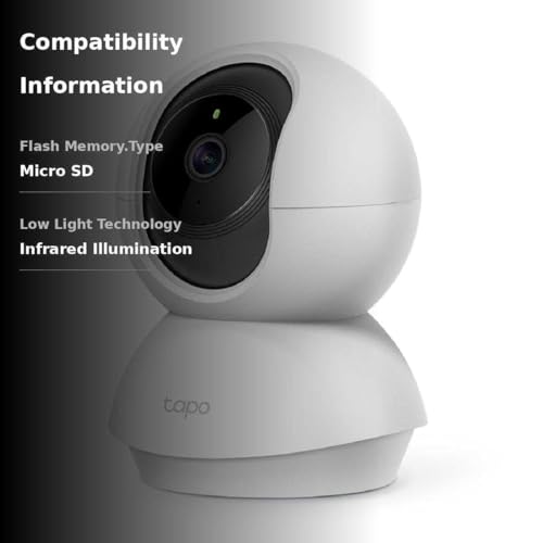 Make your home security smarter with Tapo C200 smart indoor security camera Wi-Fi. This Pan/Tilt IP camera sees everything across an entire room or walkway with the 360° horizontal and 114° vertical range pan/tilt field of view. Get instant push notifications when motion, person, or baby crying is detected from this baby camera monitor, all with no additional fee. Check what’s inside your home, even at night with night vision up to 30ft. with integrated IR sensor. Use 2-way audio with built-in siren to see as a pet camera with phone app and ward off intruders. Fully compatible with Amazon Alexa and Google Assistant, use your simple voice command to view Tapo indoor security camera live stream on Echo Show or Google Chorme Cast with a screen. Save footage continuously on up to a 512 GB microSD card (not included) or subscribe to Tapo Care for cloud storage which saves 30-day video history and provides additional benefits such as motion tracking, baby crying detection, and more. [Before purchasing a microSD card, please check the TP-Link website FAQ to ensure compatibility with your device.]