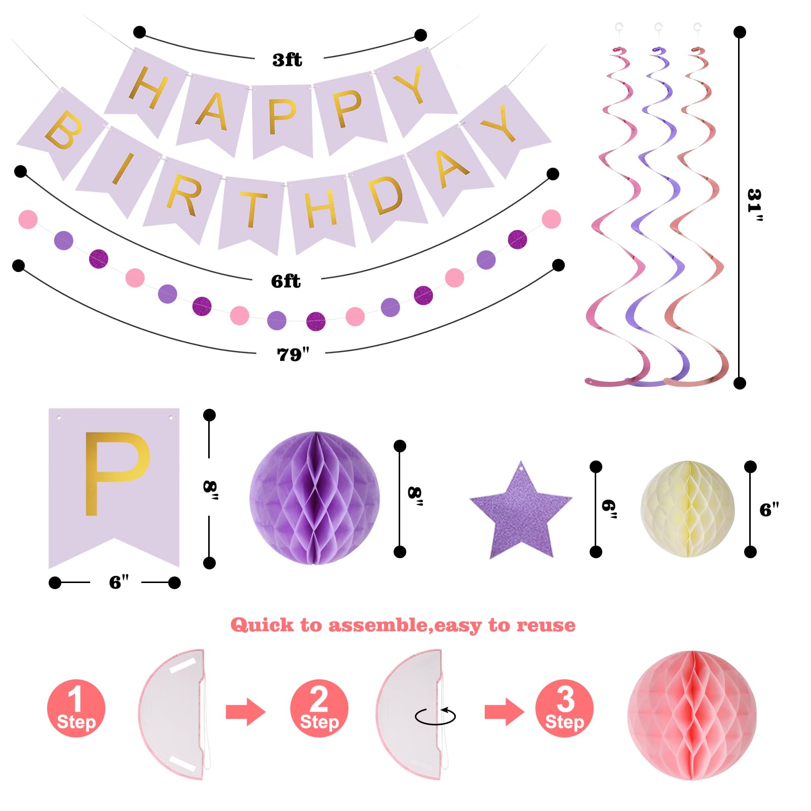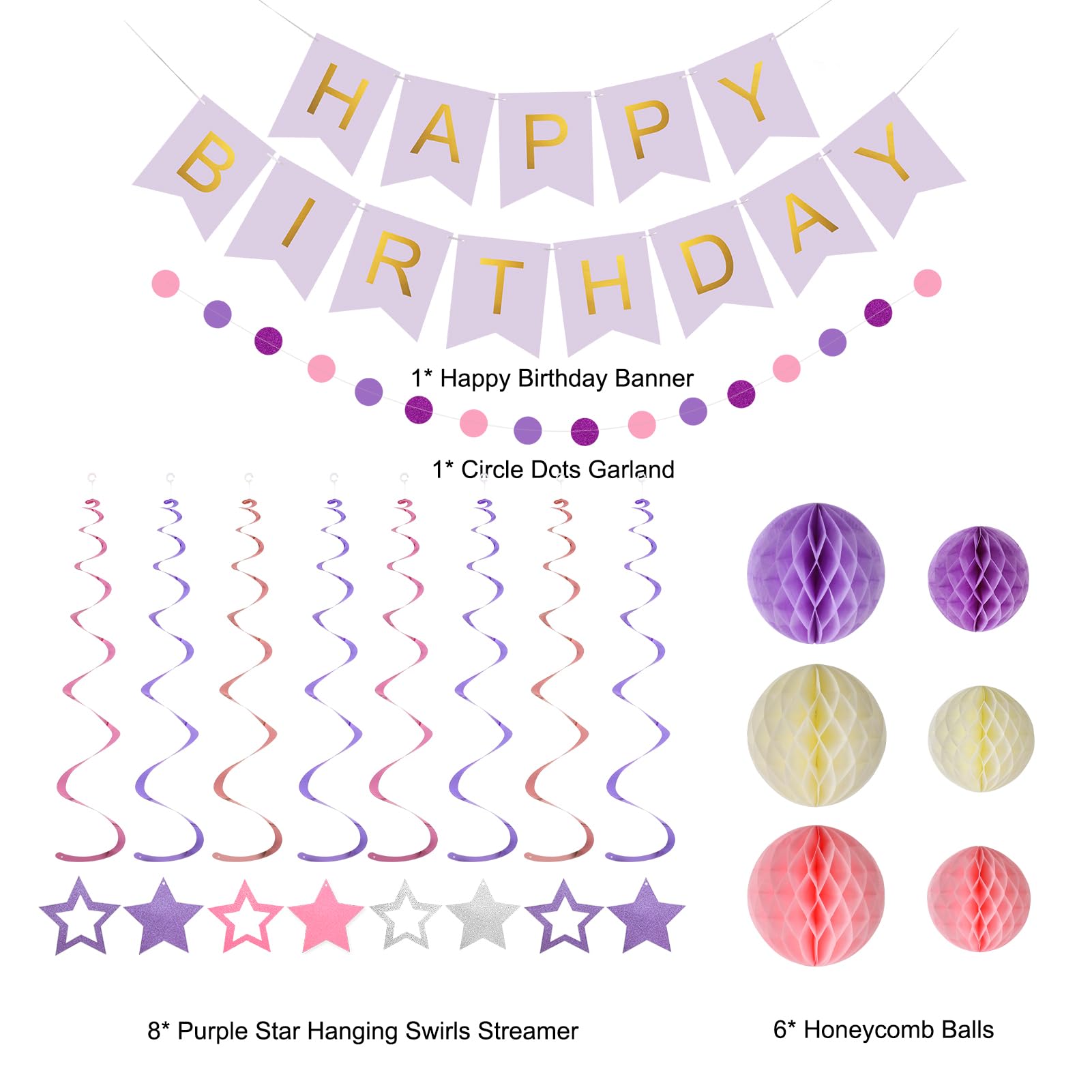 Package Including: With our Birthday Party Decorations package, you'll have everything you need to create the perfect party atmosphere. You can get 1pcs Happy Birthday Banner, 12pcs Honeycomb Balls, 16pcs Stars Swirls Streamers, and 1pcs Circle Dots Decorations. No need to worry about running around and finding individual items. It's convenient package.