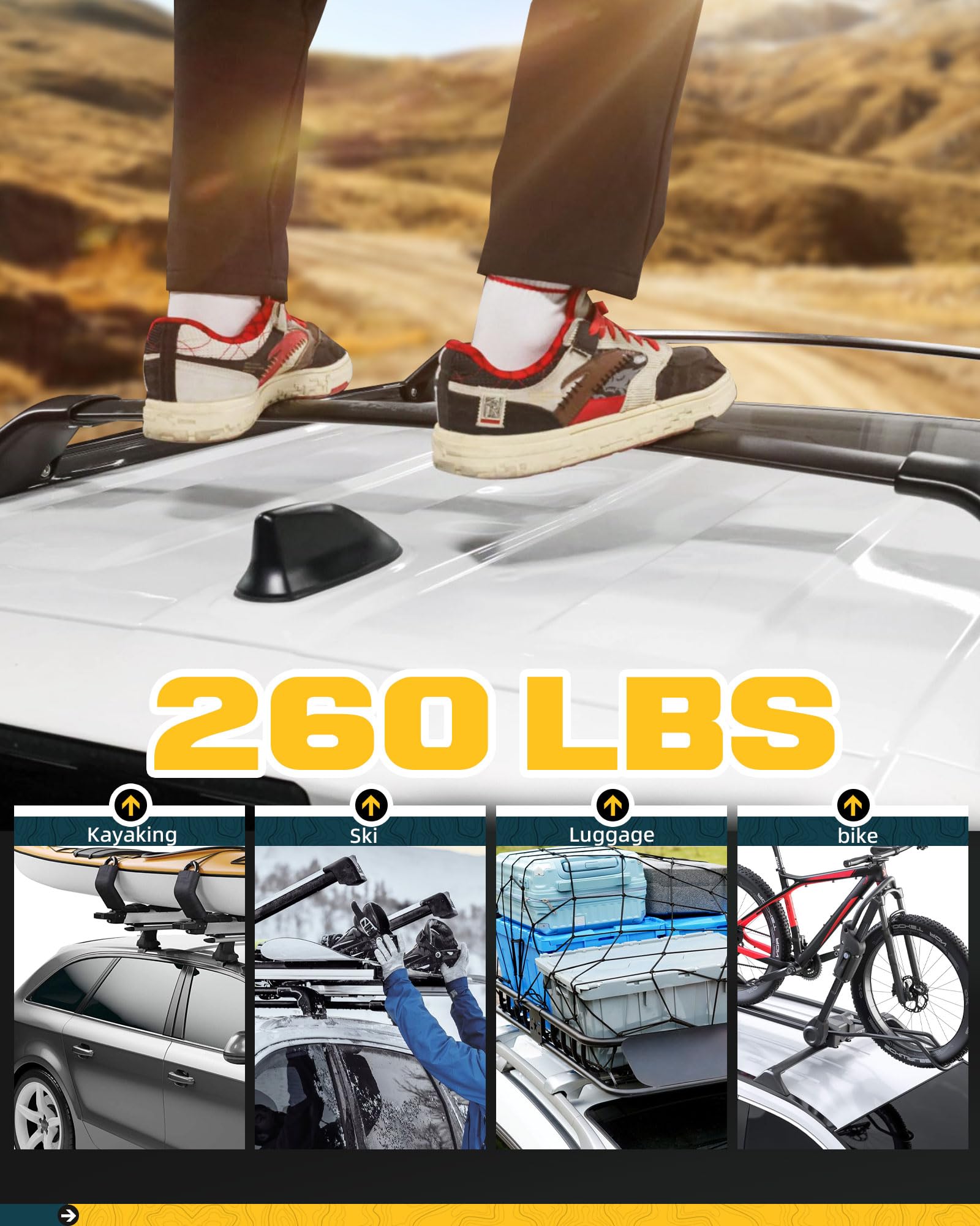260 lb Load Capacity: Haul all your adventure gear with confidence. Kayaks, canoes, snowboards, bikes, luggage, storage bags, fishing poles, and more