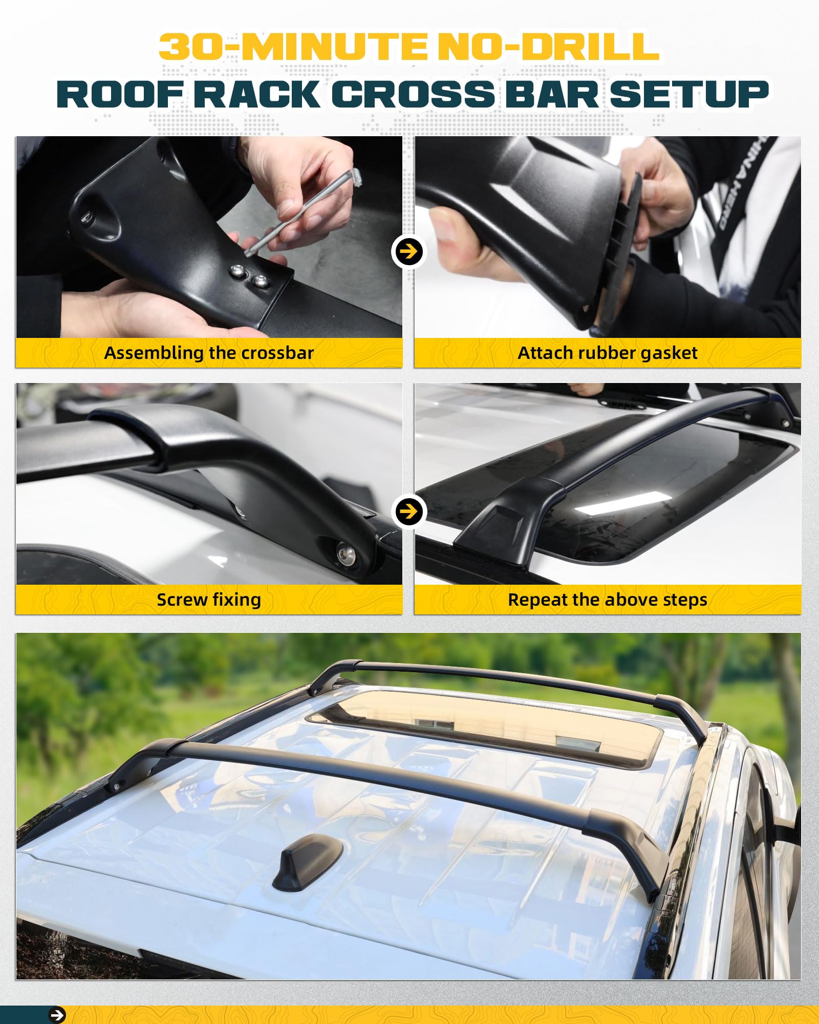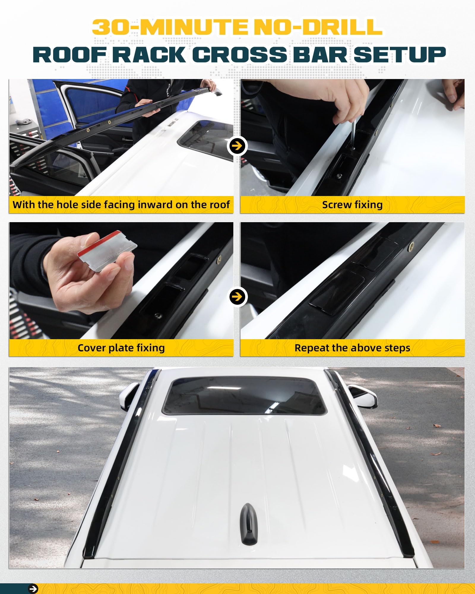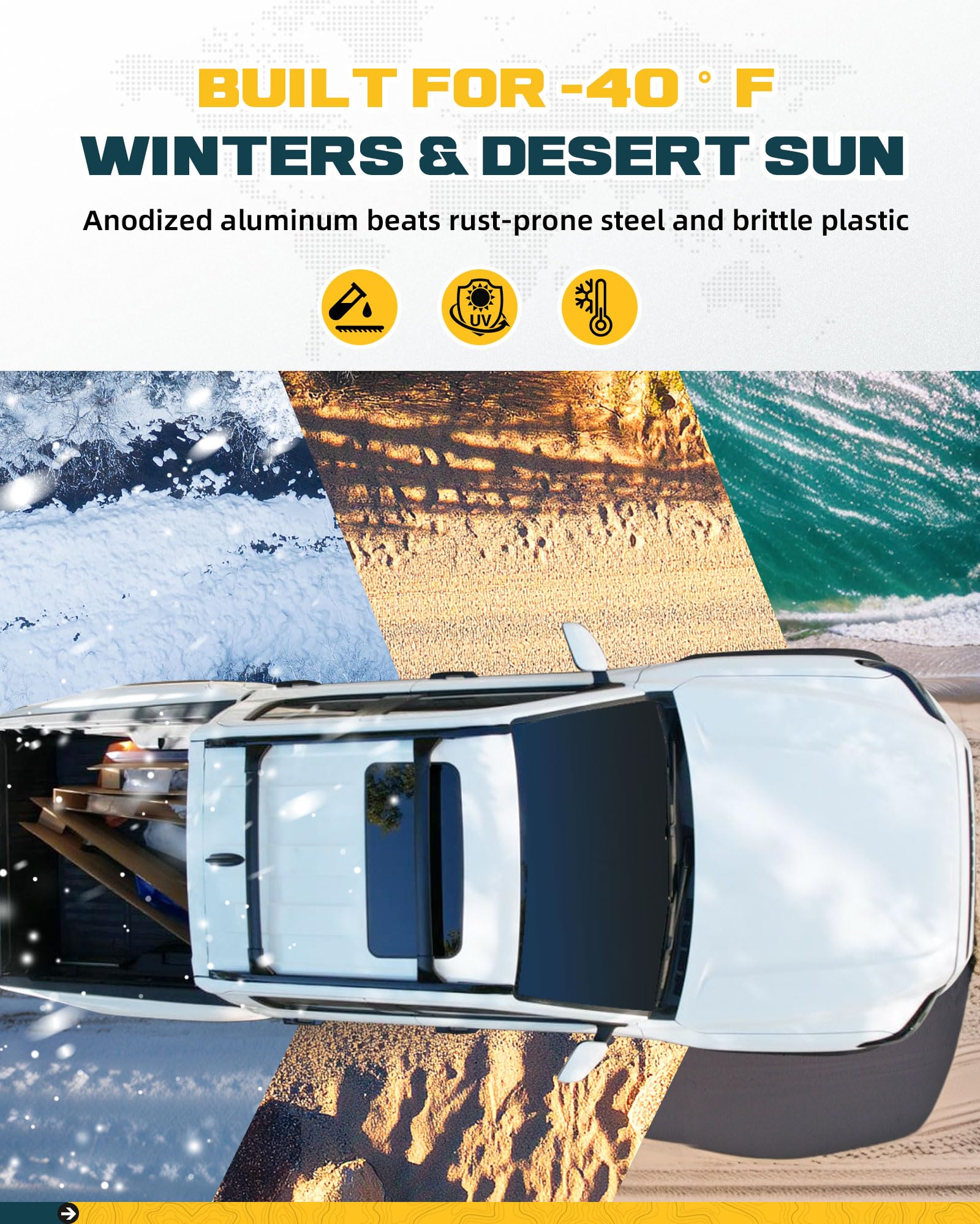 Premium Materials: The tacoma luggage rack cross bars are made of high-quality, lightweight, durable aluminum. Black powder coating and high-quality hardware accessories provide effective anti-corrosion and anti-rust protection. Can cope with all kinds of bad and extreme weather