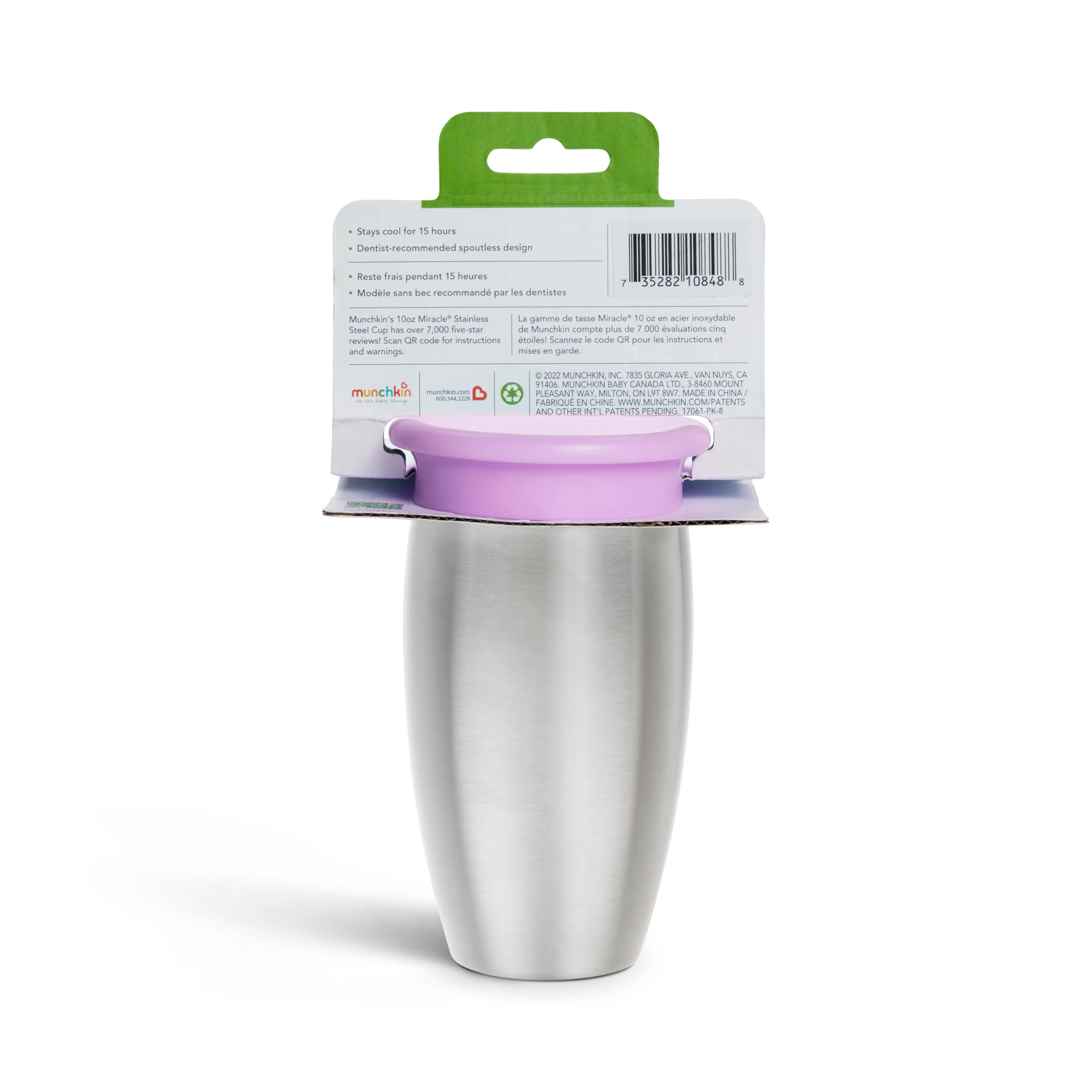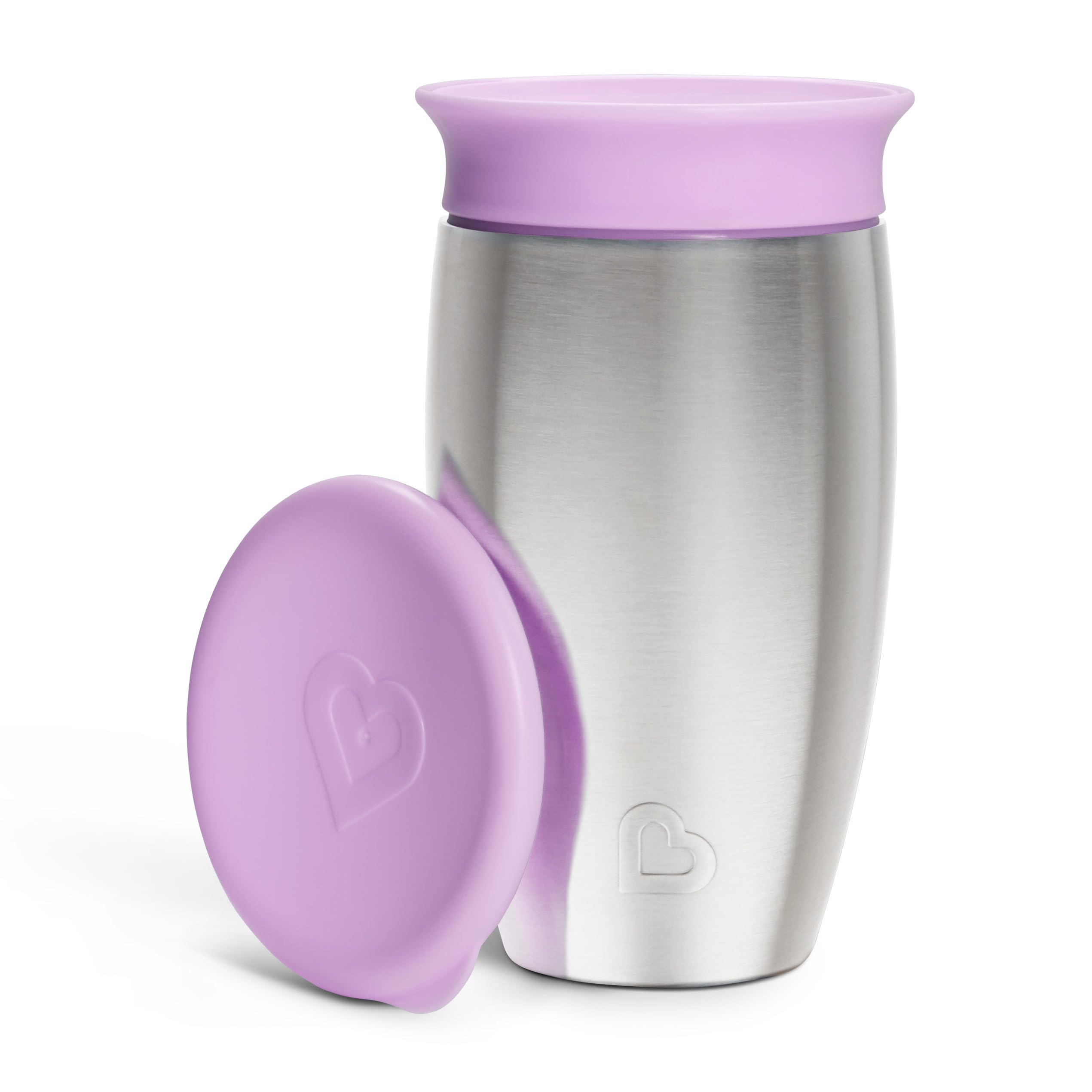 Munchkin's Miracle stainless steel 360 sippy cup is here to "steel" your heart when it comes to sippy cups. Let's face it: toddlers are a messy bunch, especially when first navigating sippy cups. Now imagine a world in which drinks didn't spill at all-no, it's not a miracle- it's Munchkin Miracle 360 Cup. This premium insulated stainless steel sippy cup keeps liquids cool for fresh and cold toddler drinks all day. Light-weight stainless steel material is extremely durable and double wall design won't sweat or get hands cold. Patented 360 rim eliminates messes and supports kids' Dental health All at once because drinking from anywhere around the rim, like a regular cup, helps support normal muscle development in a child's mouth. Also includes matching cup lid to keep drinking edge clean on-the go. With no extra spouts, straws or pieces, the Miracle 360 Cup is easy to use and even easier to clean. We'll say Cheers to that. Suitable for children 12 months and up.