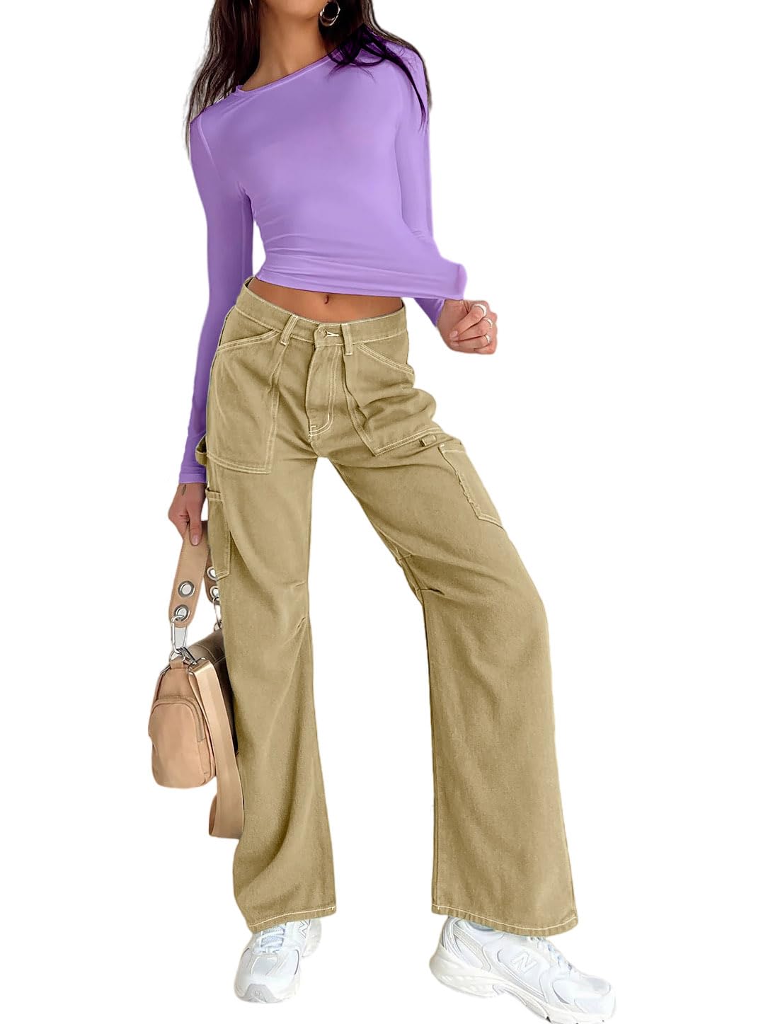 Basic Womens Long Sleeve Tops: This basic tee for womens shirts, long sleeve, basic crewneck, casual womens going out tops, solid colors, basic womens going out tops in summer and fall, cute and trendy, fits wear in different occasion