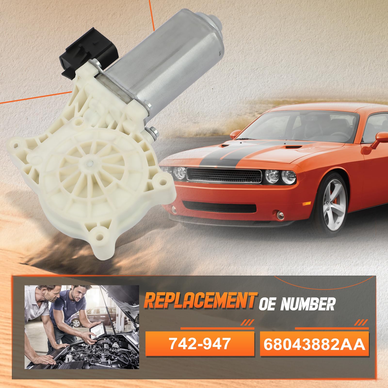 [Vehicle Fitment]:Power Window Lift Motor Compatible with Dodge Challenger 2008-2017 Front Right Passenger [Reference Number]: 68043882AA; 742-947 Note:Please verify your vehicle' s information carefully before purchase in case of getting the wrong part. Or contact us before purchasing,Thank you!