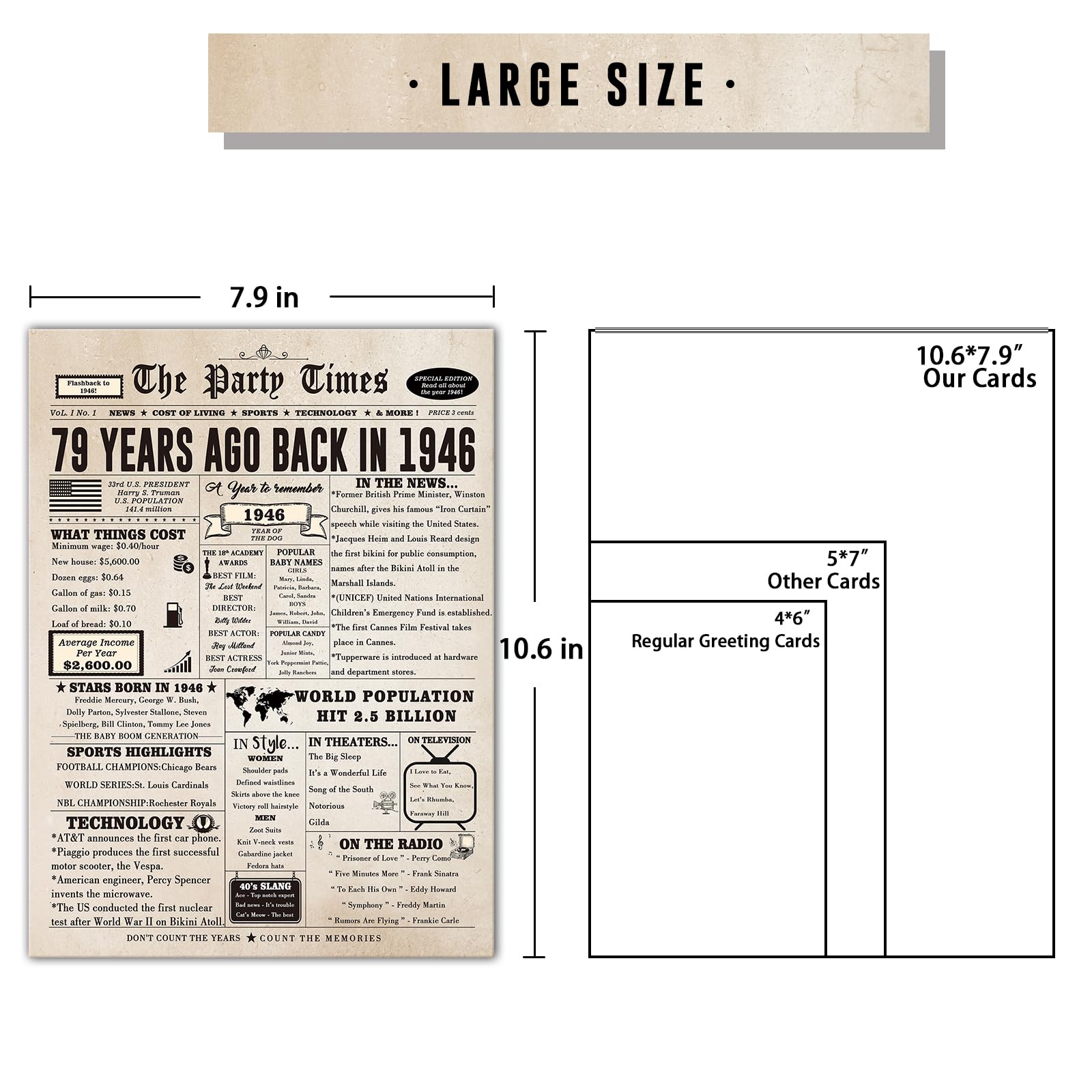 This large 79th birthday card features a vintage newspaper design, showcasing important events, movies and sports events from 79 years ago.