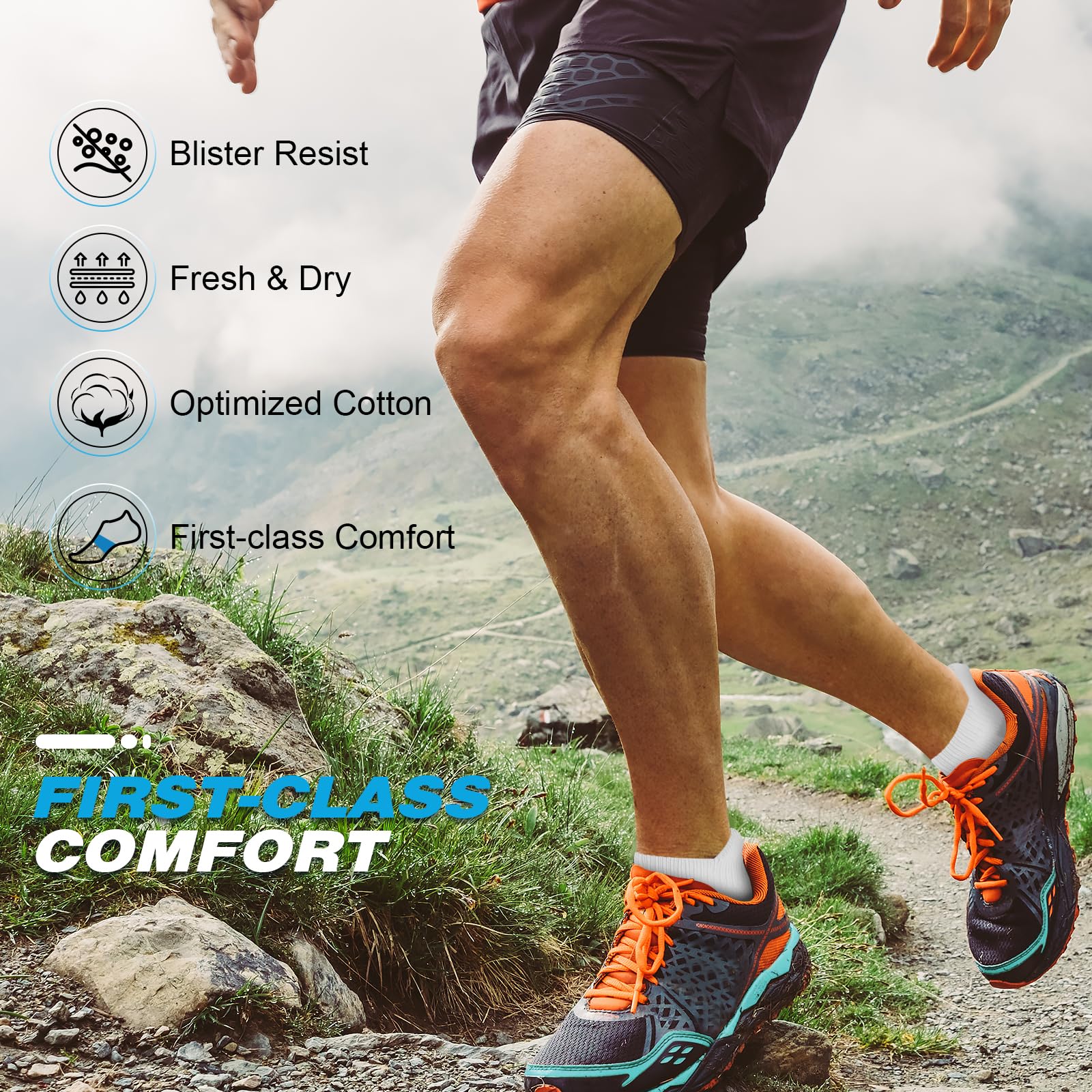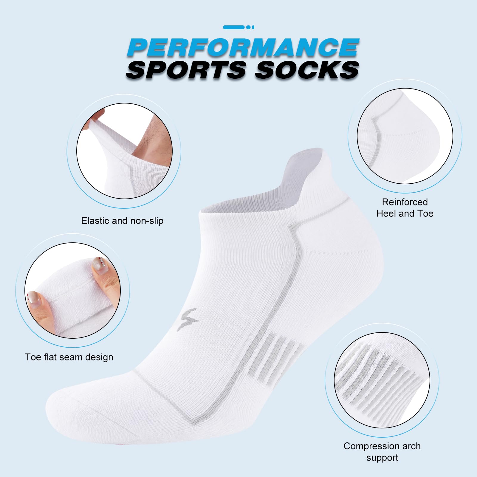 Anti-Slip & Arch Support: Featuring ribbed cuffs and arch support, these athletic socks ensure a secure and comfortable fit. The compression band molds to your foot, keeping the socks in place whether you're running, walking, cycling, working out, or just tackling daily activities