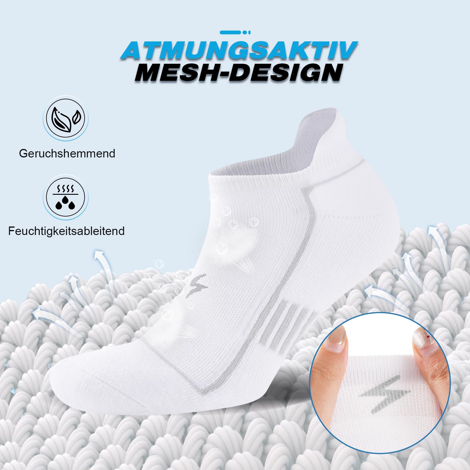 Breathable Running Socks: Designed for maximum airflow and moisture wicking, these men's ankle socks keep your feet dry and cool with mesh arch ventilation. Their excellent stretch and durability ensure long-lasting wear without worry