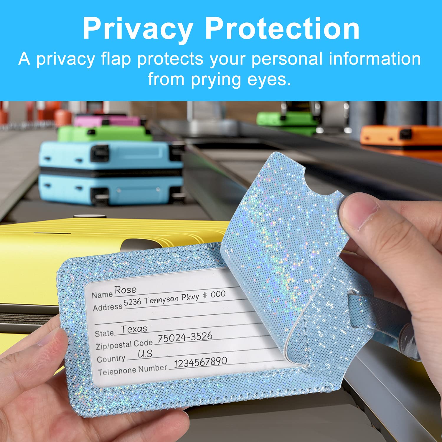 PRIVACY COVER: We designed our luggage tags for suitcases with a privacy cover for the user's information. When traveling it is important to keep your personal information as confidential and secure as possible. You can do this by using our travel tags for luggage with a privacy tab, which keeps the info stored securely inside. It is important to make sure you protect your address and name on bag tags for luggage with privacy cover so people can't see them.