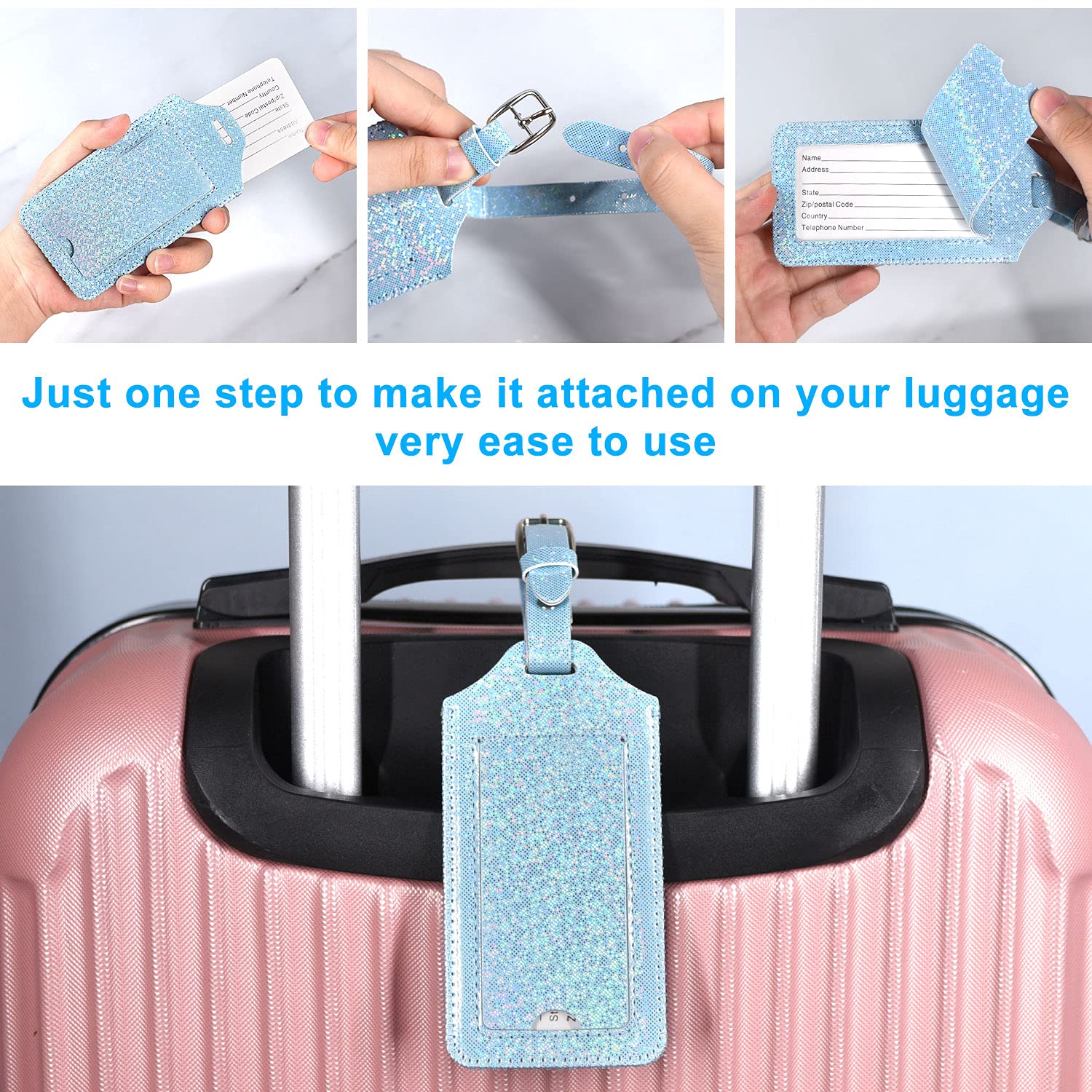 EXCELLENT MATERIALS: The sleek and modern design of our leather backpack tags will keep your belongings secure while you're on the go. These durable and attractive suitcase tags are made with high-quality PU leather, making them perfect for everyday use or special occasions so that they don't get lost in a crowd. This backpack tag leather is extremely durable, so you never have to worry about them getting ripped off.