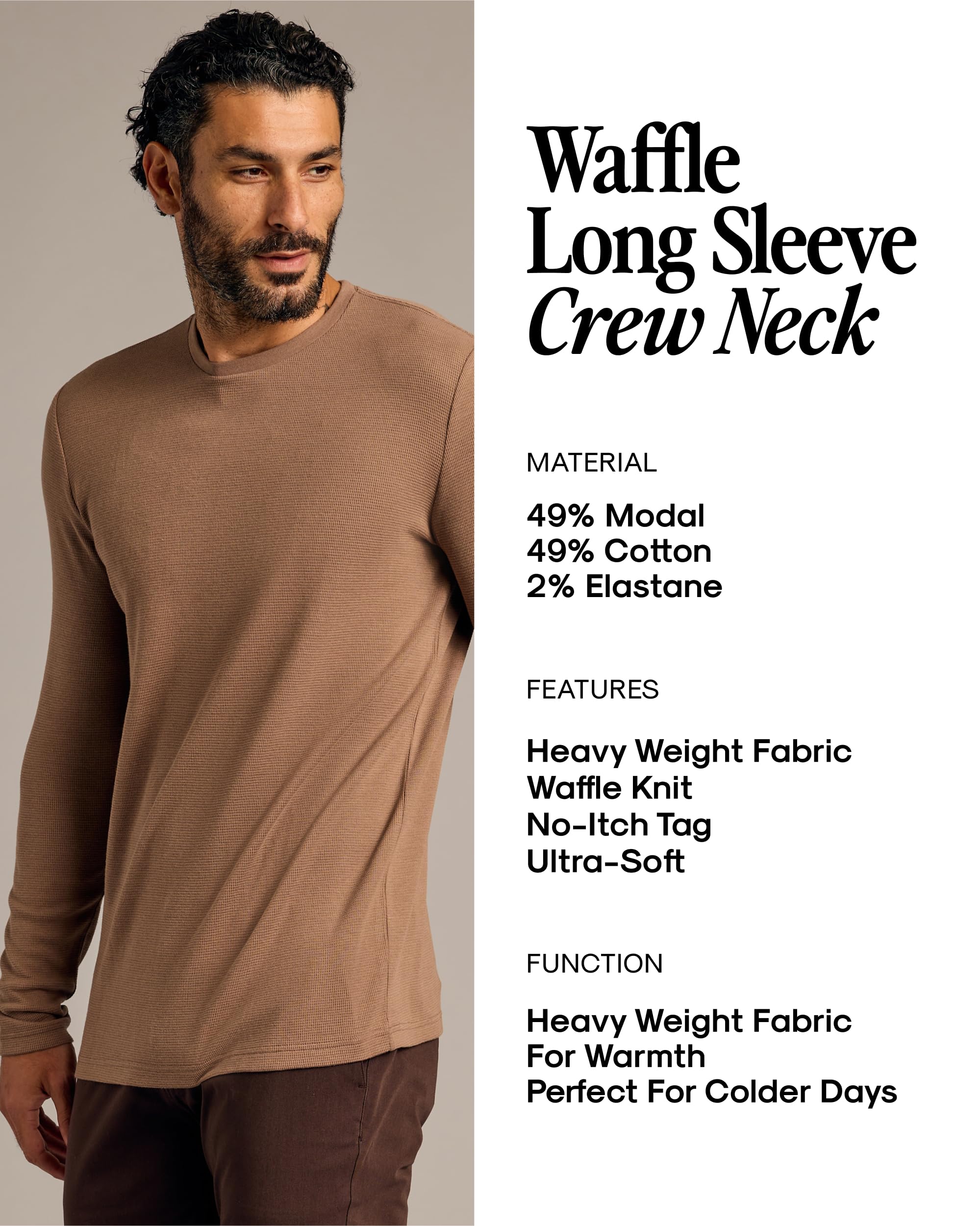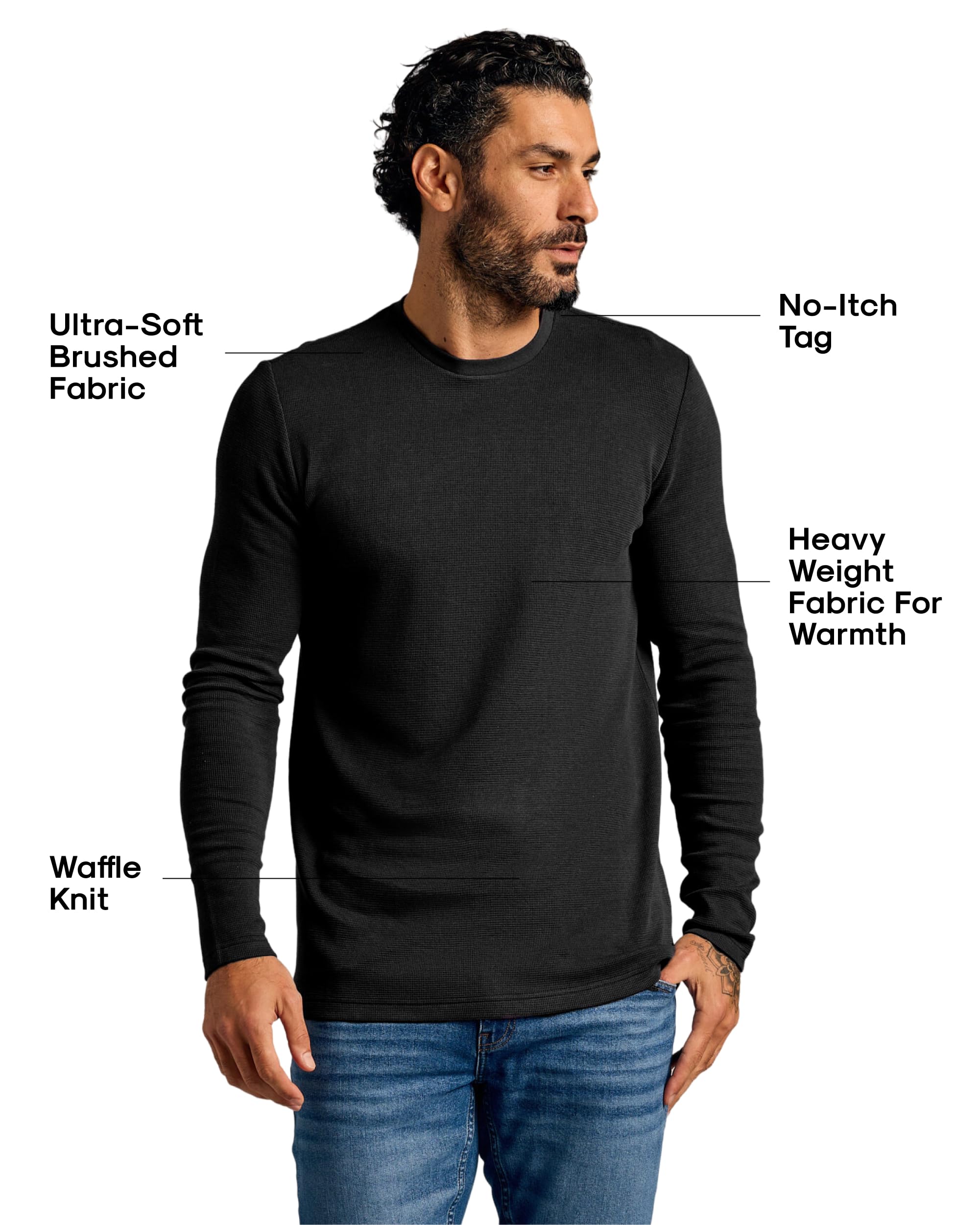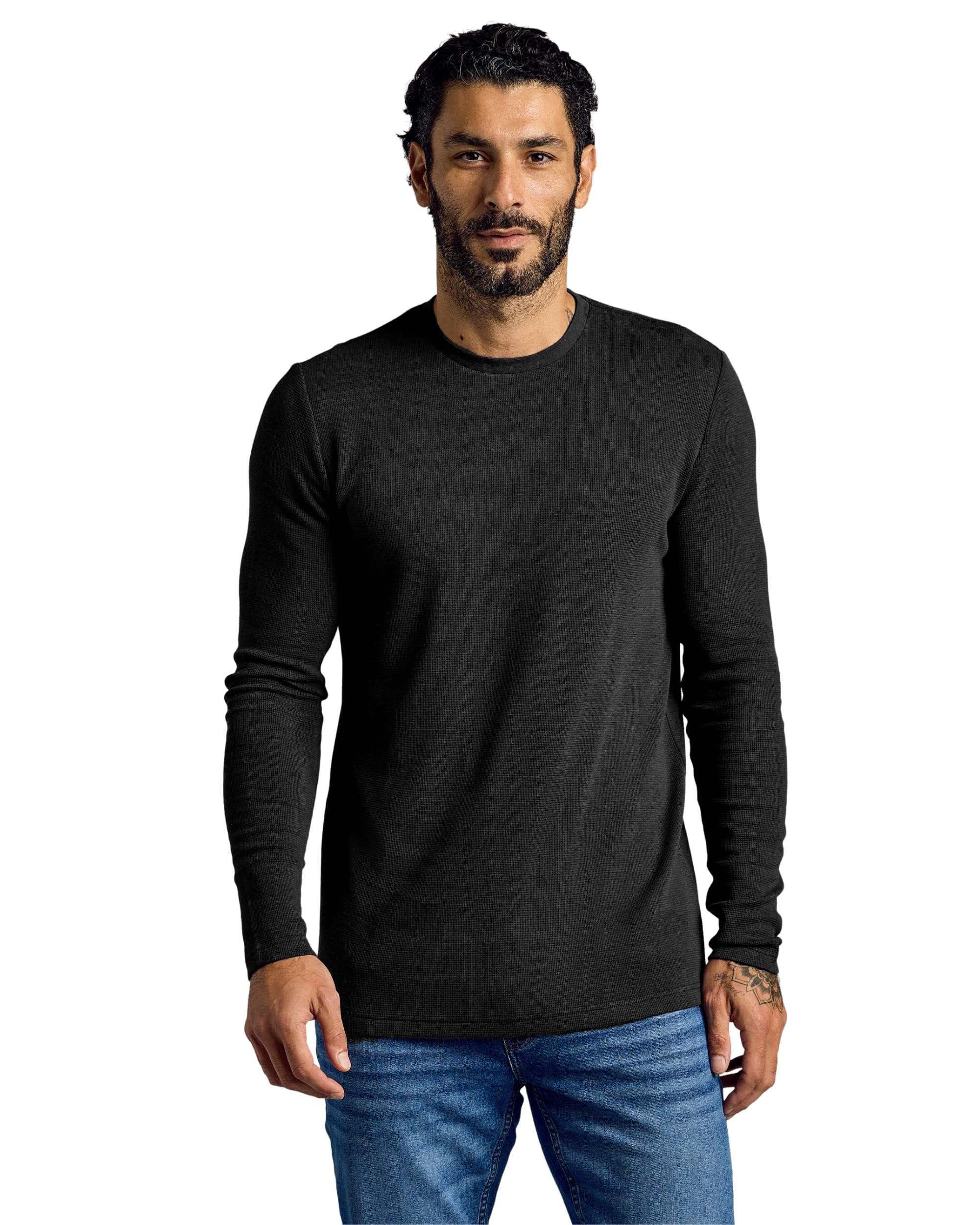 THREE WAYS TO WEAR: Choose your mens long sleeve shirt pack from our classic crew (60% combed ringspun cotton/40% polyester jersey), henley shirts for men long sleeve (same soft blend) or the thicker waffle-knit (49% Modal/49% Cotton/2% Elastane).