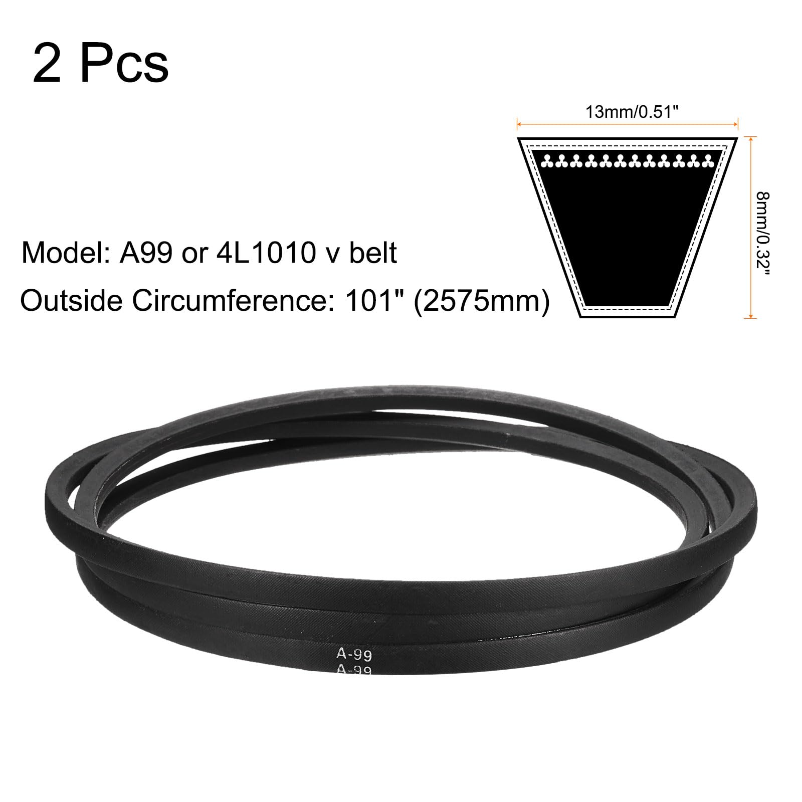 Model: A99 or 4L1010 v belt. Inner Circumference: 99" (2525mm); Outside Circumference: 101" (2575mm).