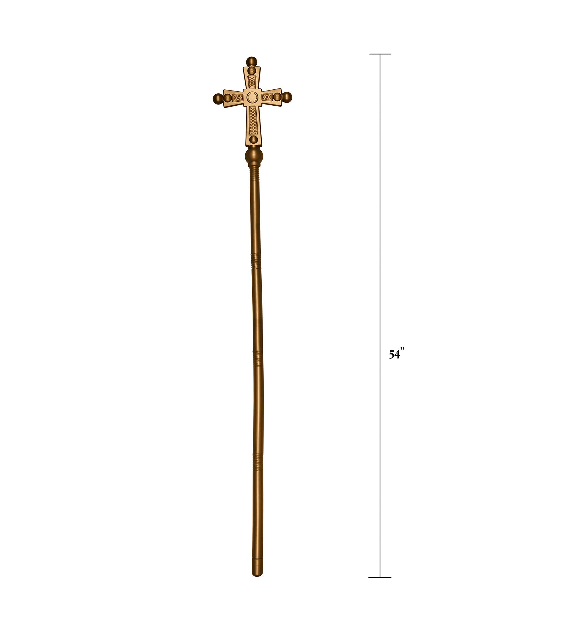 Adjustable 54-Inch Gold Saint Staff β This five-piece staff is lightweight, sturdy, and easy to assemble. Standing 54 inches tall, it adjusts for different heights and features a gold-tone finish for an elegant and striking look. Whether dressing as a bishop, saint, or clergy figure, this staff enhances religious-themed costumes. Ideal for Halloween, cosplay, church plays, or theatrical performances, itβs a standout accessory for any holy ensemble.