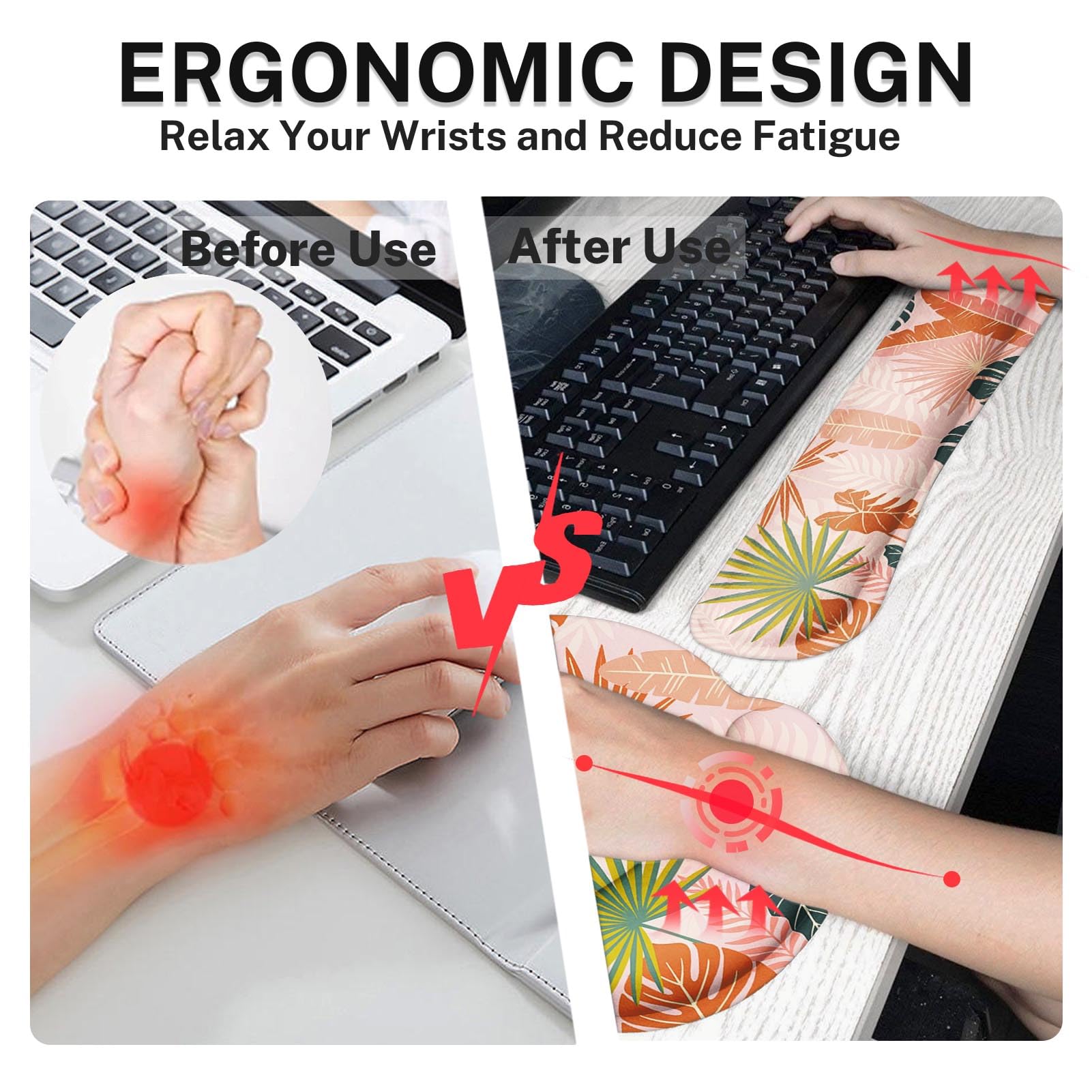 Ergonomically Designed for Comfort:The mouse pad and wrist support set are designed with memory foam and covered with a soft,smooth material,ensuring lightweight comfort and durability for your daily work life.They are ergonomically contoured to prevent soreness in your arms,wrists, and hands during long working or gaming sessions,thus significantly reducing stress and fatigue.