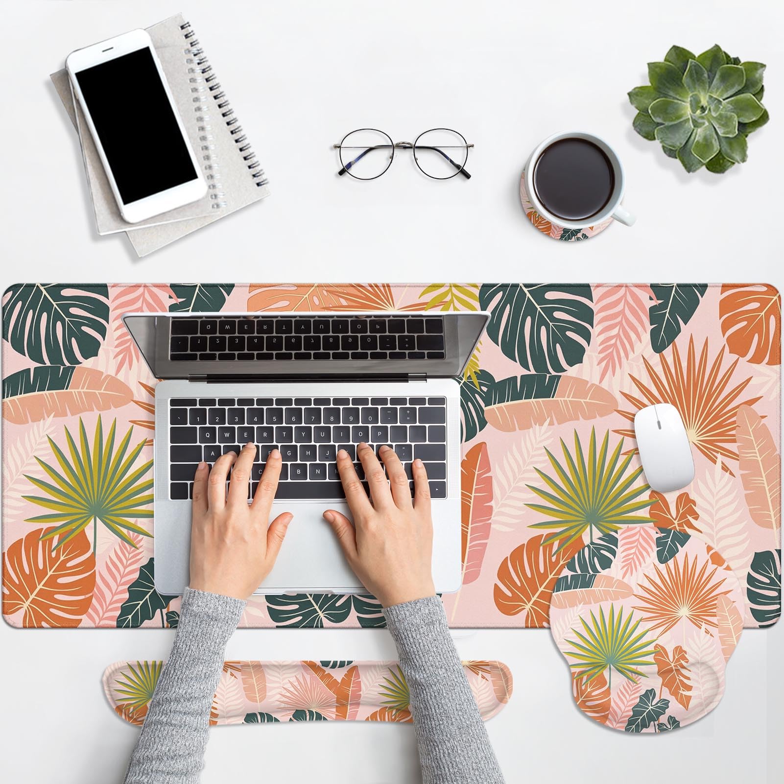 Stylish and Vibrant Design:Our extended mouse pad and keyboard wrist rest feature advanced printing technology,resulting in clear,vibrant patterns that add a touch of fun and relaxation to your busy life.Ideal for study,work,gaming,or as an elegant decor,these non-slip desk pads with wrist support cater to all your needs.
