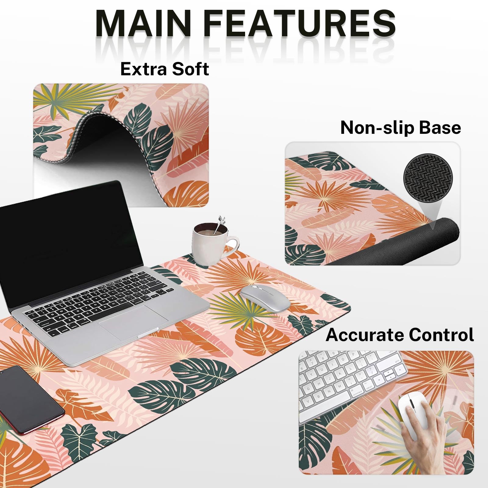 Anti-Slip Design with Stitched Edges:The desk pad features a soft and dense non-skid natural rubber base that ensures it stays firmly in place.You can immerse yourself in work or games without worrying about the desk pad shifting.Moreover,the delicate stitched edges prevent wear,deformation,and degumming,ensuring security,durability,and enhancing the aesthetic and lifespan of the mouse pad.