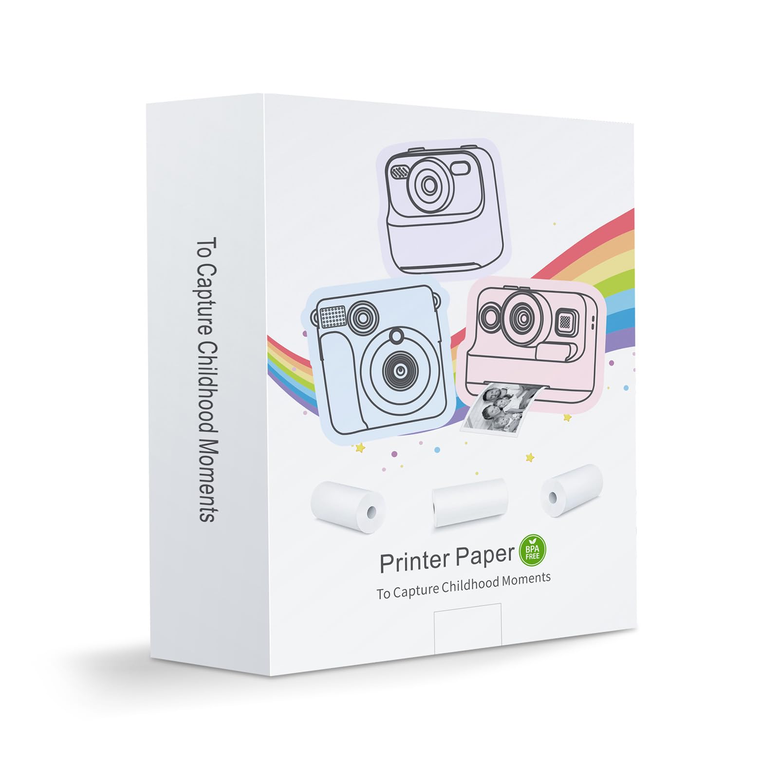 [12 Rolls Print Paper]: Include 12 rolls instant camera refill print paper.Each roll of paper is about 2.2 in × 20 ft and can print about 75-90 photos.Enough quantity for kids to replace and use for a long time