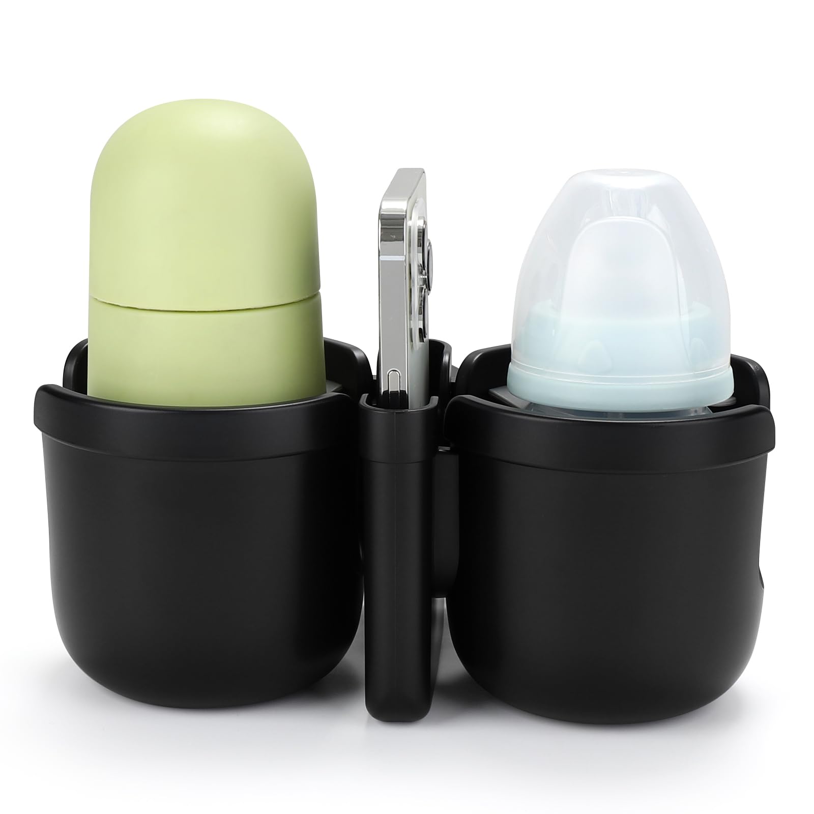 This 2-in-1 stroller cup holder with a phone holder, it can load drinks bottles and cell phone at the same time. You can see new messages, incoming calls in the first time when you are pushing a stroller or running on a treadmill. It is applicable to most cell phones on the market.