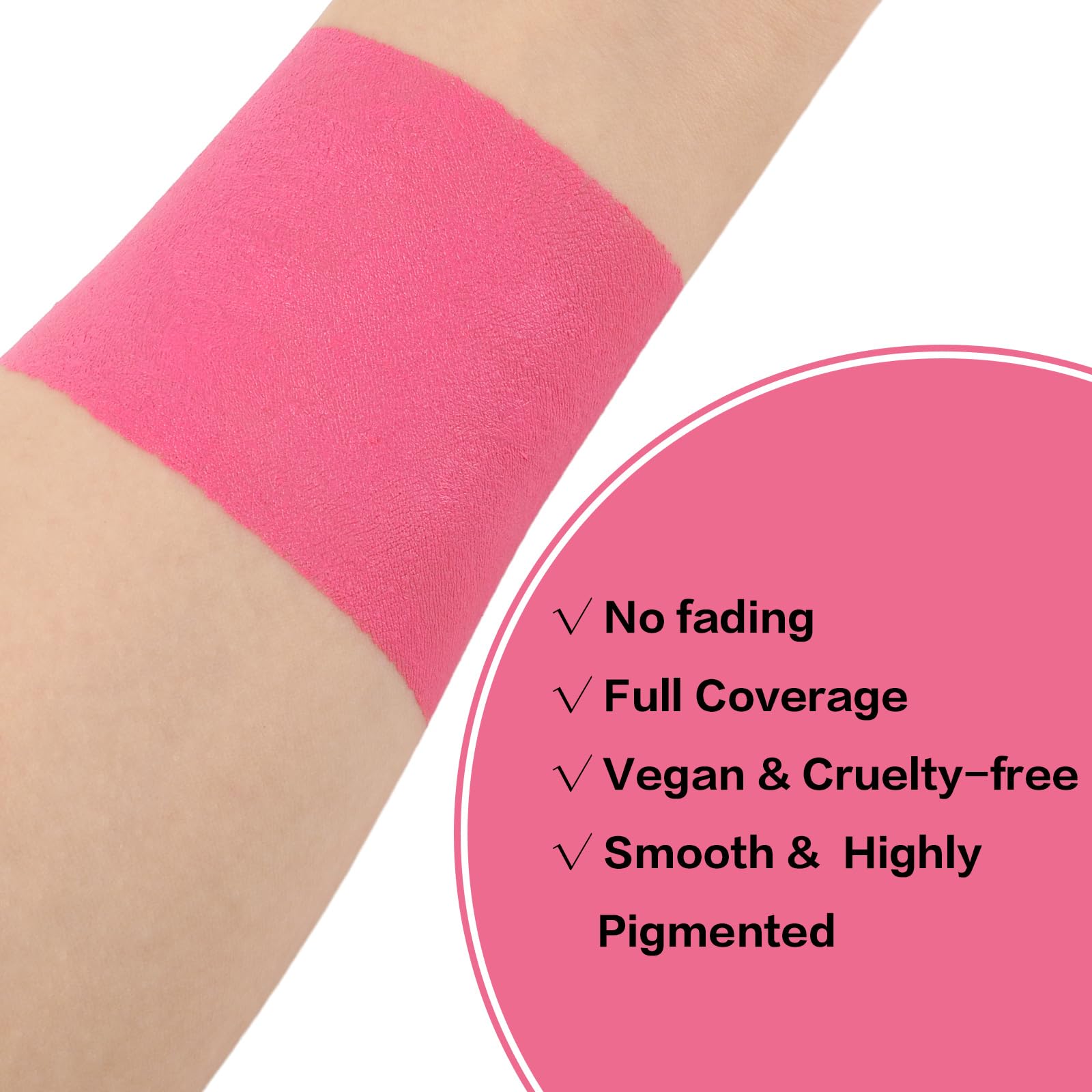 【 Easy to Apply and Remove】Just rotate it out and paint it on your skin.Easy to blend and get your desired color for versatile makeup with creative imagination.TIPS: It is hard to dry,so if you use it on the body or somewhere it will be touched,we strongly advice you to use a setting powder or setting spray to seal it.Easy to remove with the makeup remover.