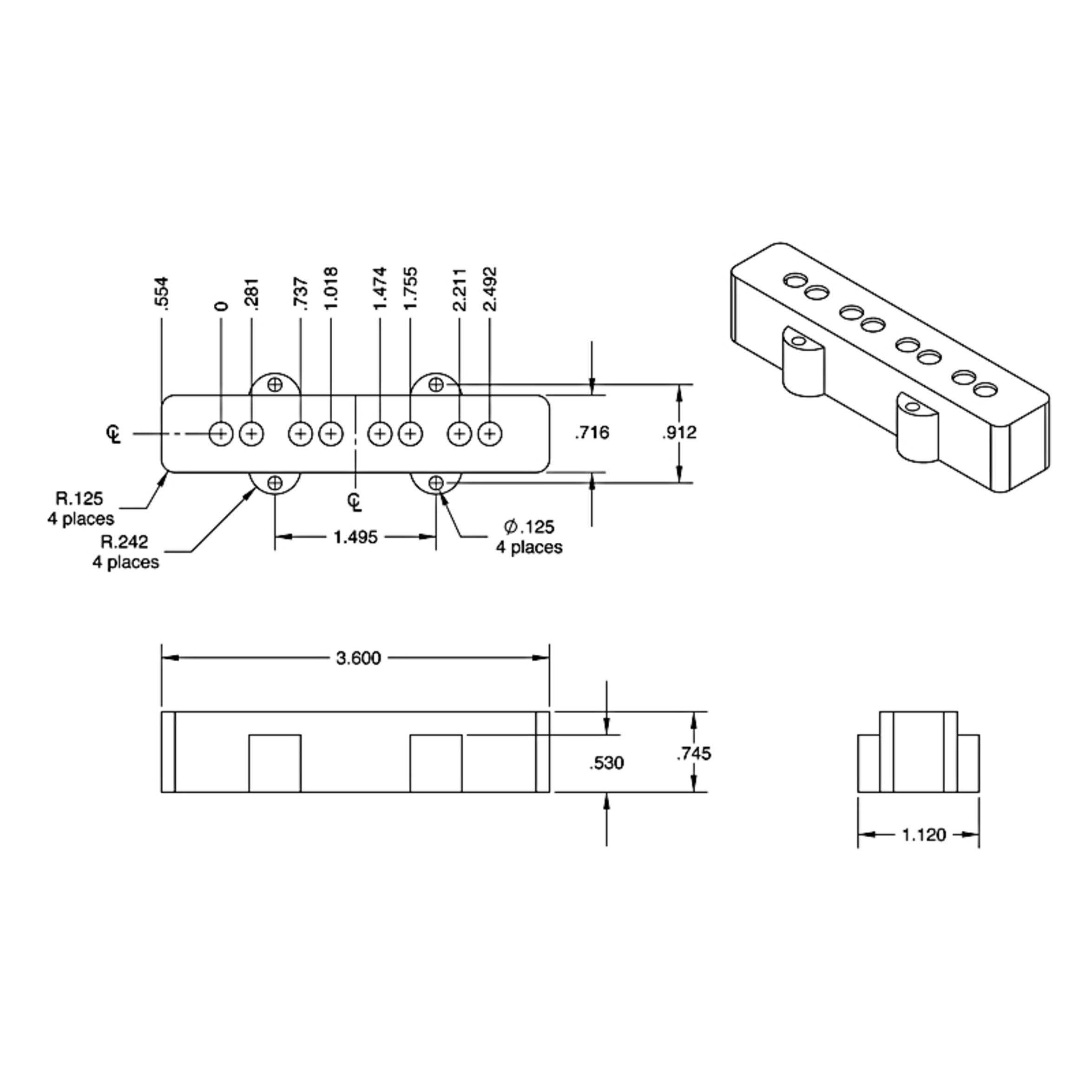 Built by hand in Santa Barbara, CA, this pickup set uses Alnico 5 rod magnets, a deep drawn chrome plated cover for the neck, 4-conductor lead wire, and is wax potted for squeal free operation.