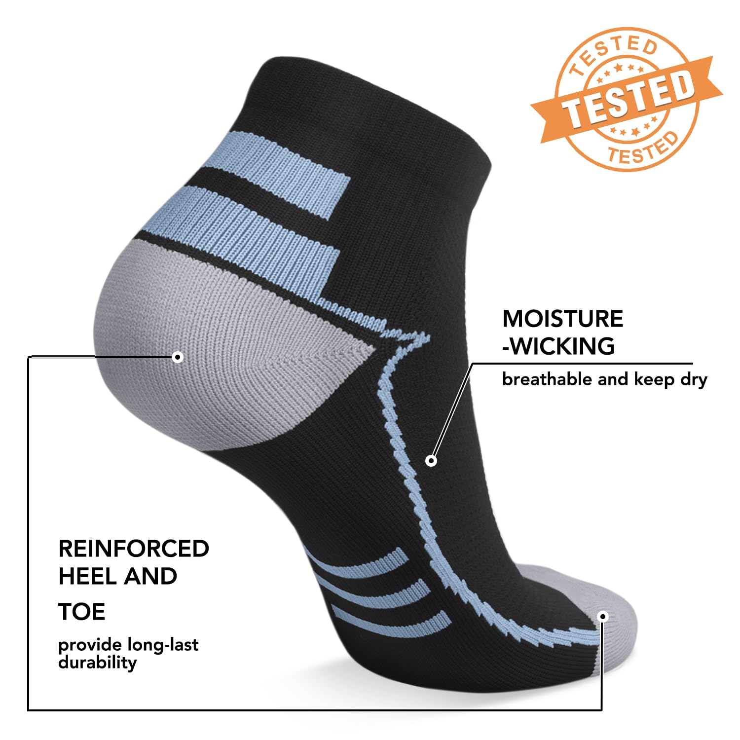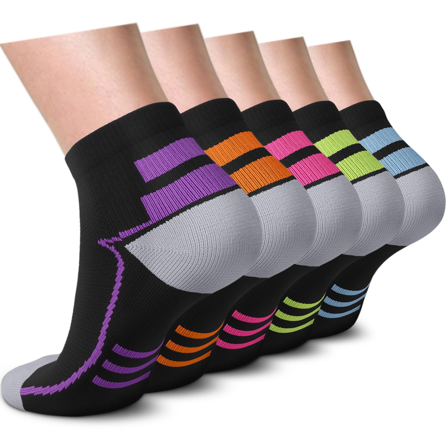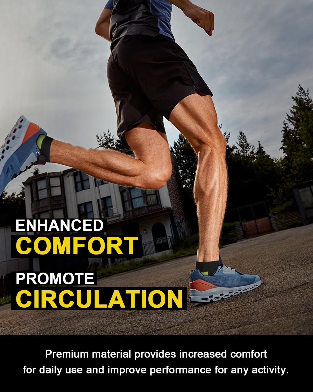 πPROTECTION & SUPPORT- Compression running socks can also help reduce swelling and inflammation in the ankle area. Compression ankle socks can provide additional support to the ankle joint, This added support can help prevent ankle sprains and other injuries, and can also improve overall balance and stability.