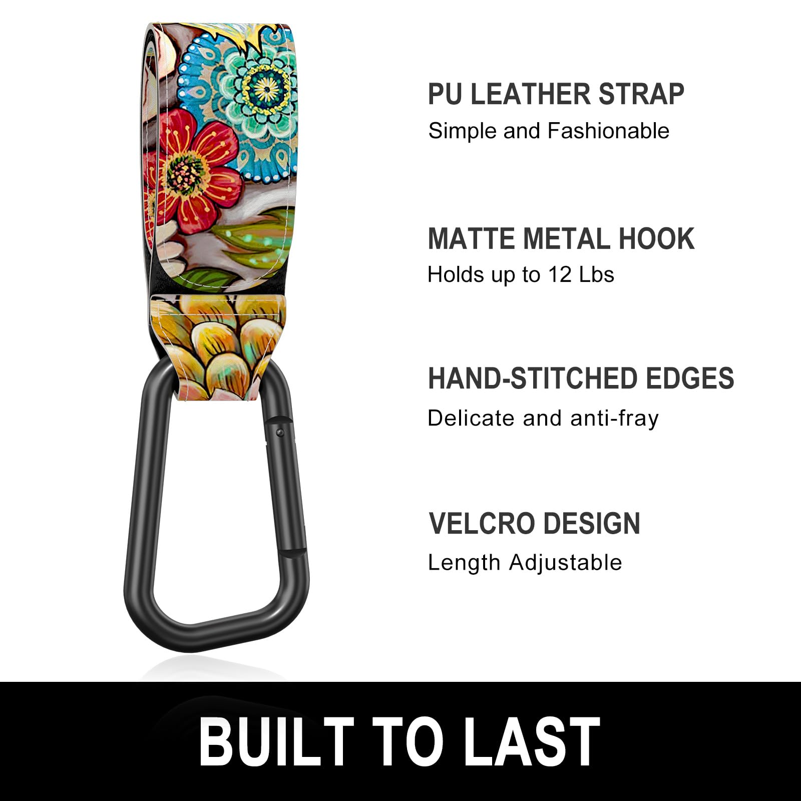 Strong and Sturdy: Sturdy metal hook and premium leather strap can hold up to 12 lbs, easy to meet all daily needs of hanging bag. Free your hands when you are out, perfect for hanging baby diaper bags, shopping baskets, tote bags, bottles, and toys