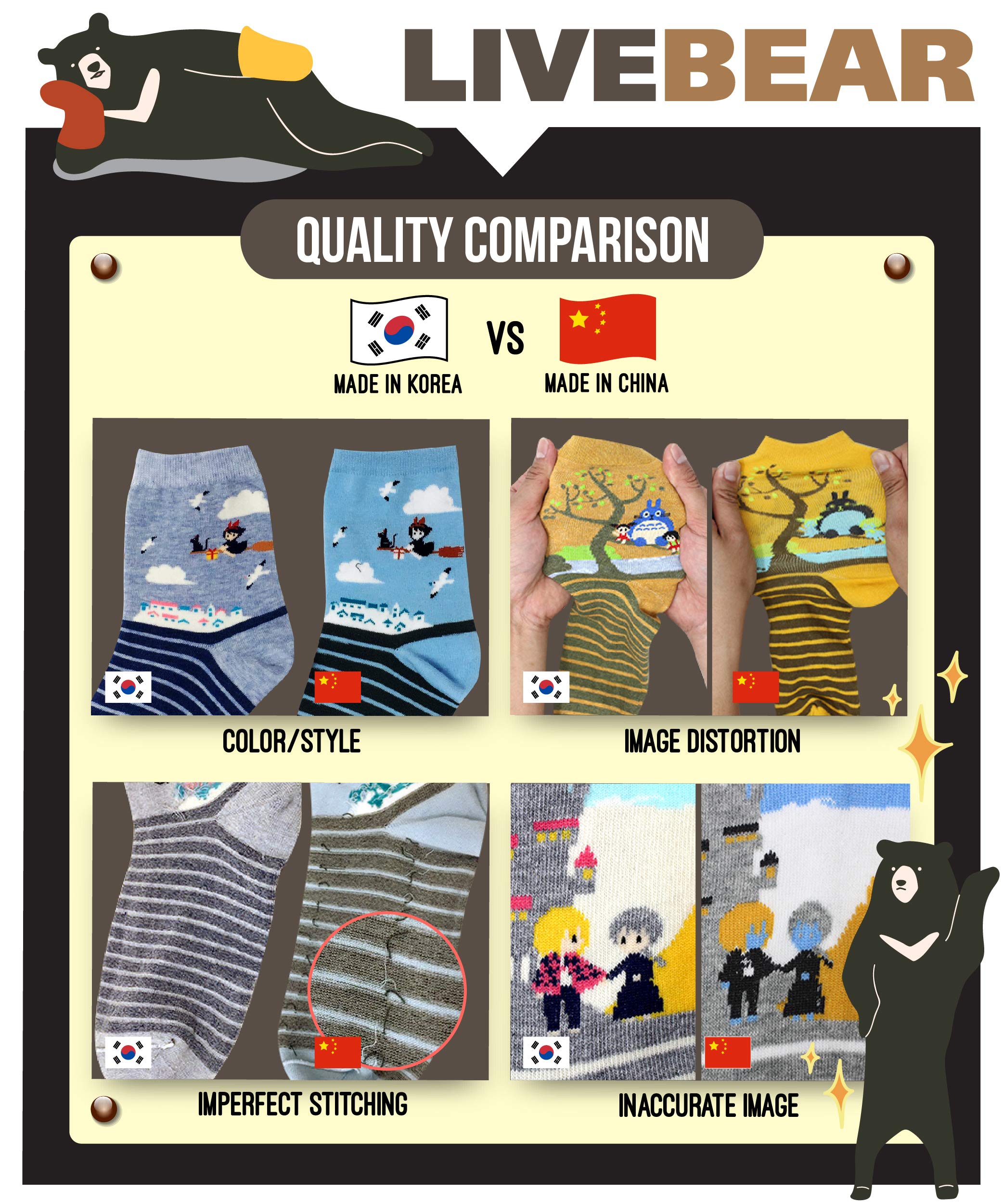 Made In Korea: These socks are made and imported from Korea. Each sock is made from 70% Cotton, 25% Spandex, and 5% Poly. So, you can rest easy and be assured that we only deal with the highest quality of material.