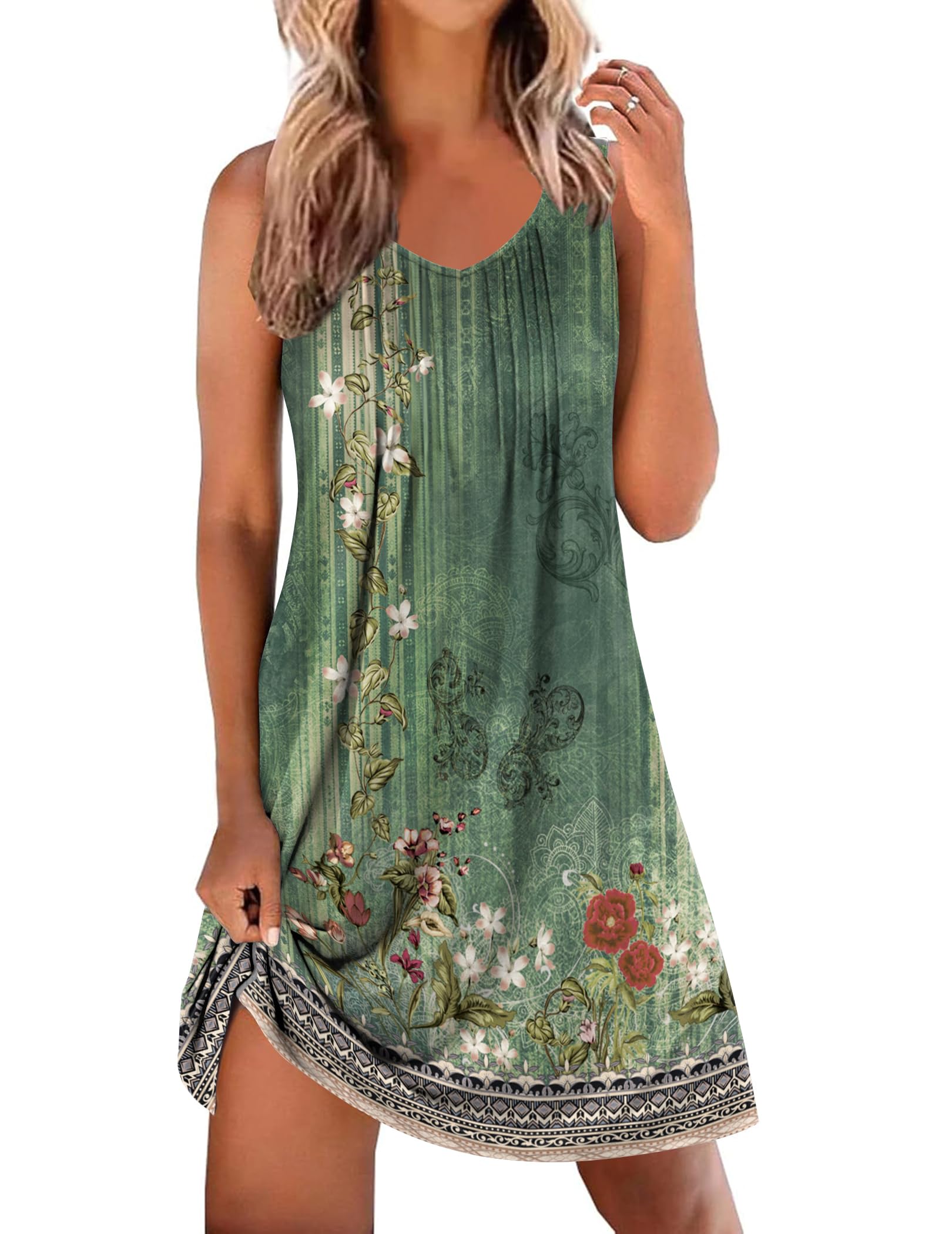 STYLE AND GENEROUS: Wide Shoulder Strap Halter(more comfy tank spaghetti), Pleated Design (Featuring Pleated design on the front and back, this tank sleep dress looks particularly cute), Above Knee Length ( More cold, young and vigor), Soft Fabric (Made of Soft comfy fabric)