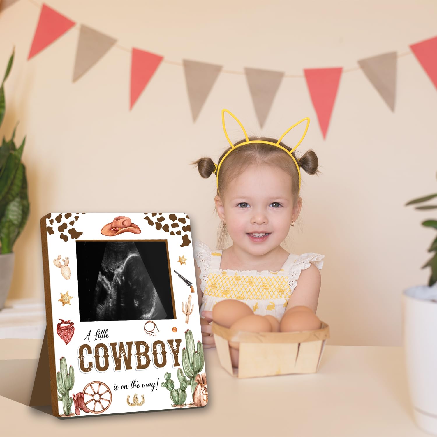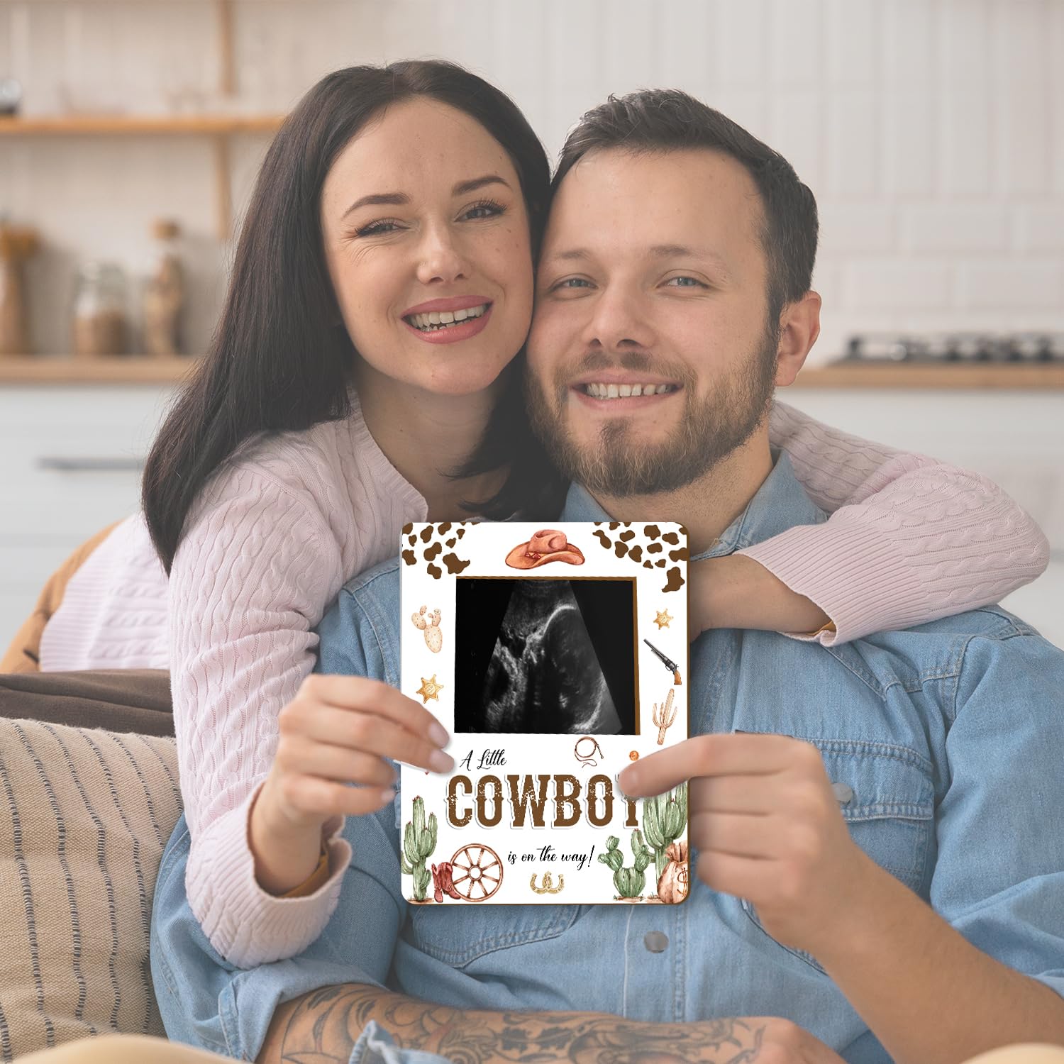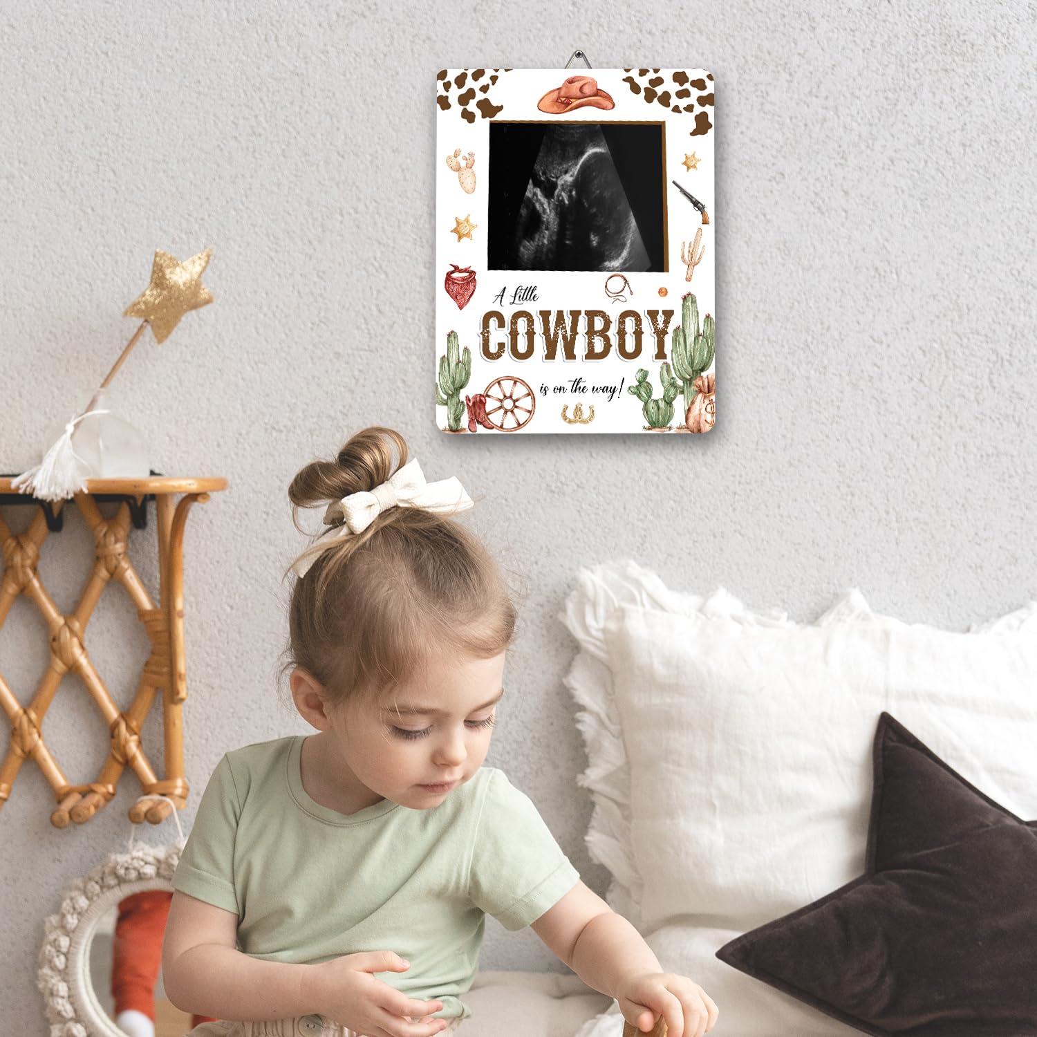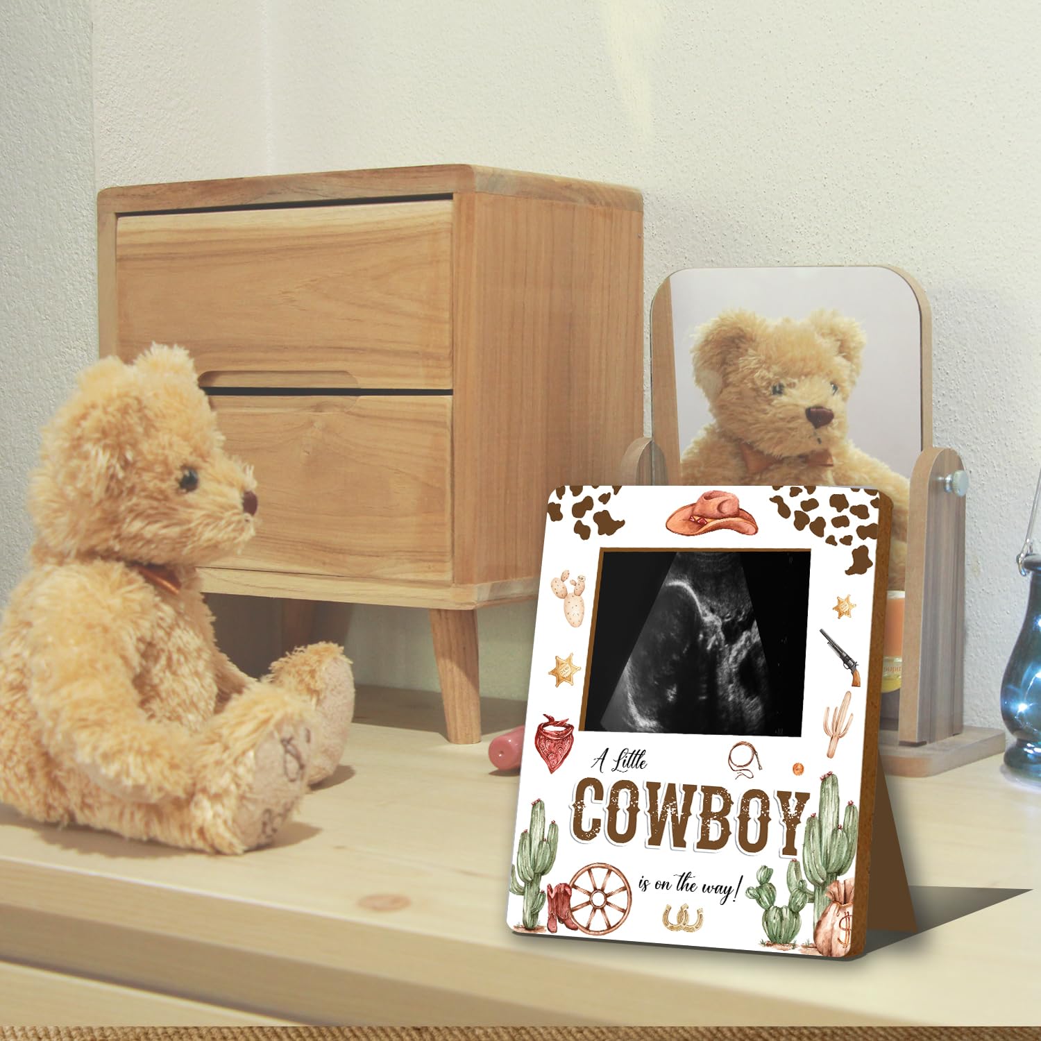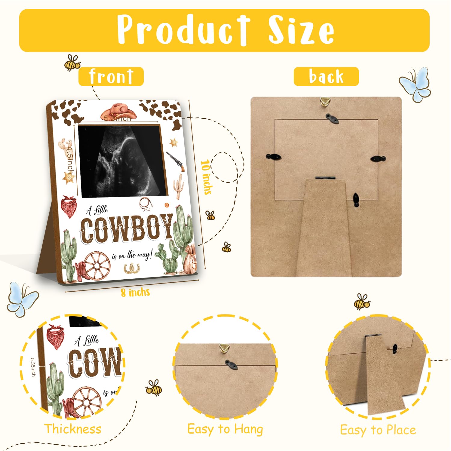 Material: This cowboy baby ultrasound photo frame for expectant parents, has clear printing and is made of wood material. It is sturdy and not easily damaged and can be used by you for a long time.
