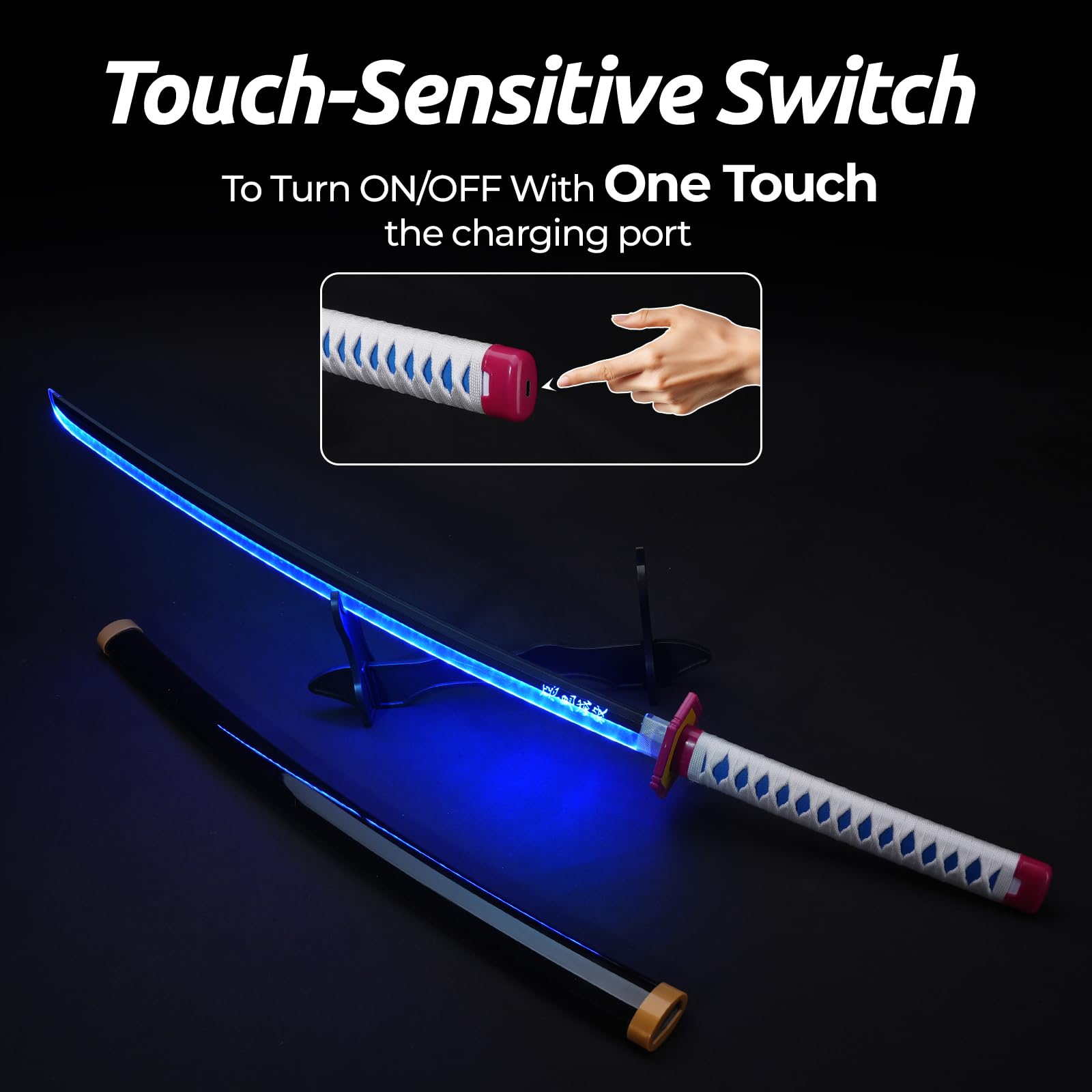 [Rechargeable and Convenient] The light-up sword is equipped with a built-in rechargeable battery that provides up to 90 minutes of continuous illumination on a full charge, which takes approximately 20 minutes. Simply touch the charging port on the handle once to easily turn the light on or off.