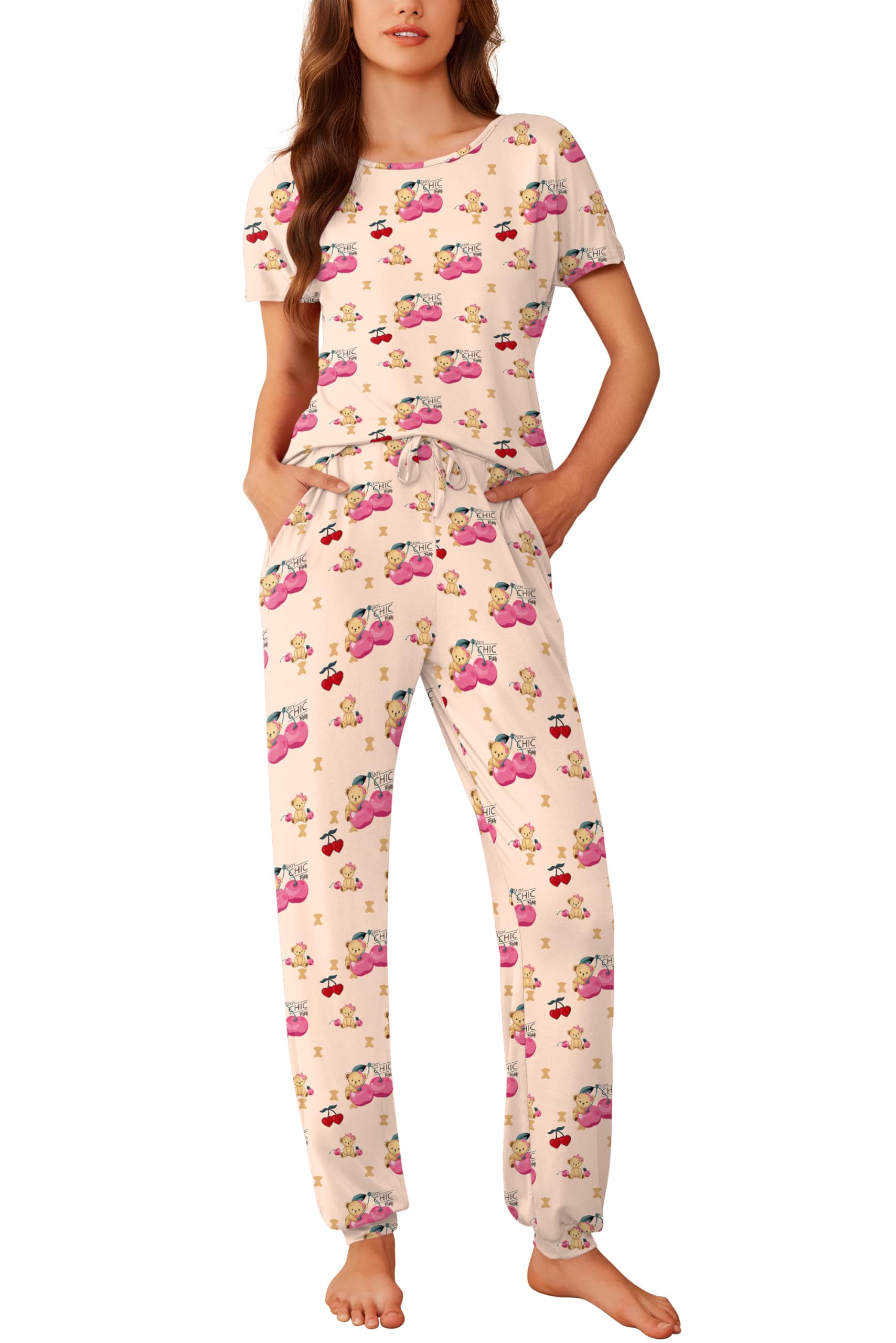 Short Sleeve Tops: The sleepwear pj features with v-neck and button tops. Simple pullover styling for easy fit. Stylish and elegant ladies sleepwear night set
