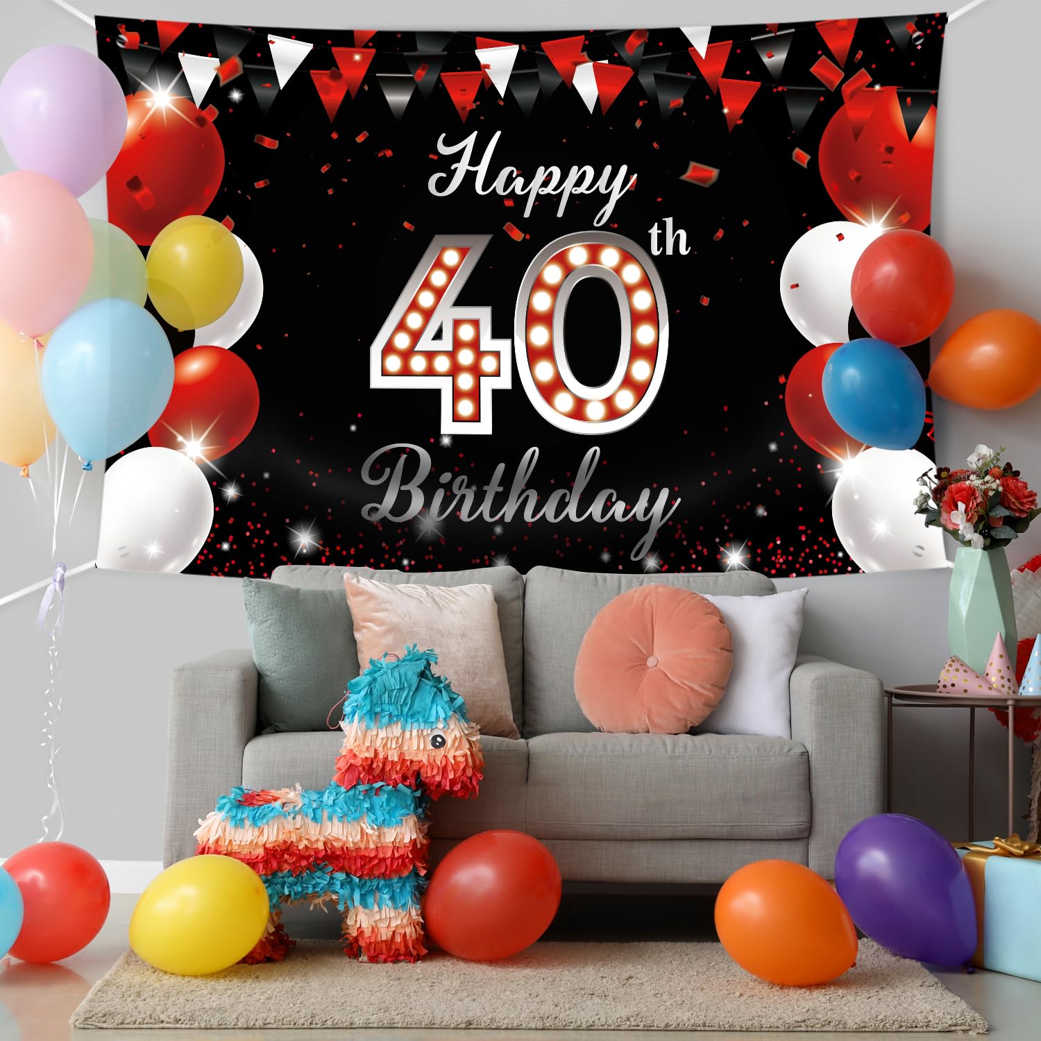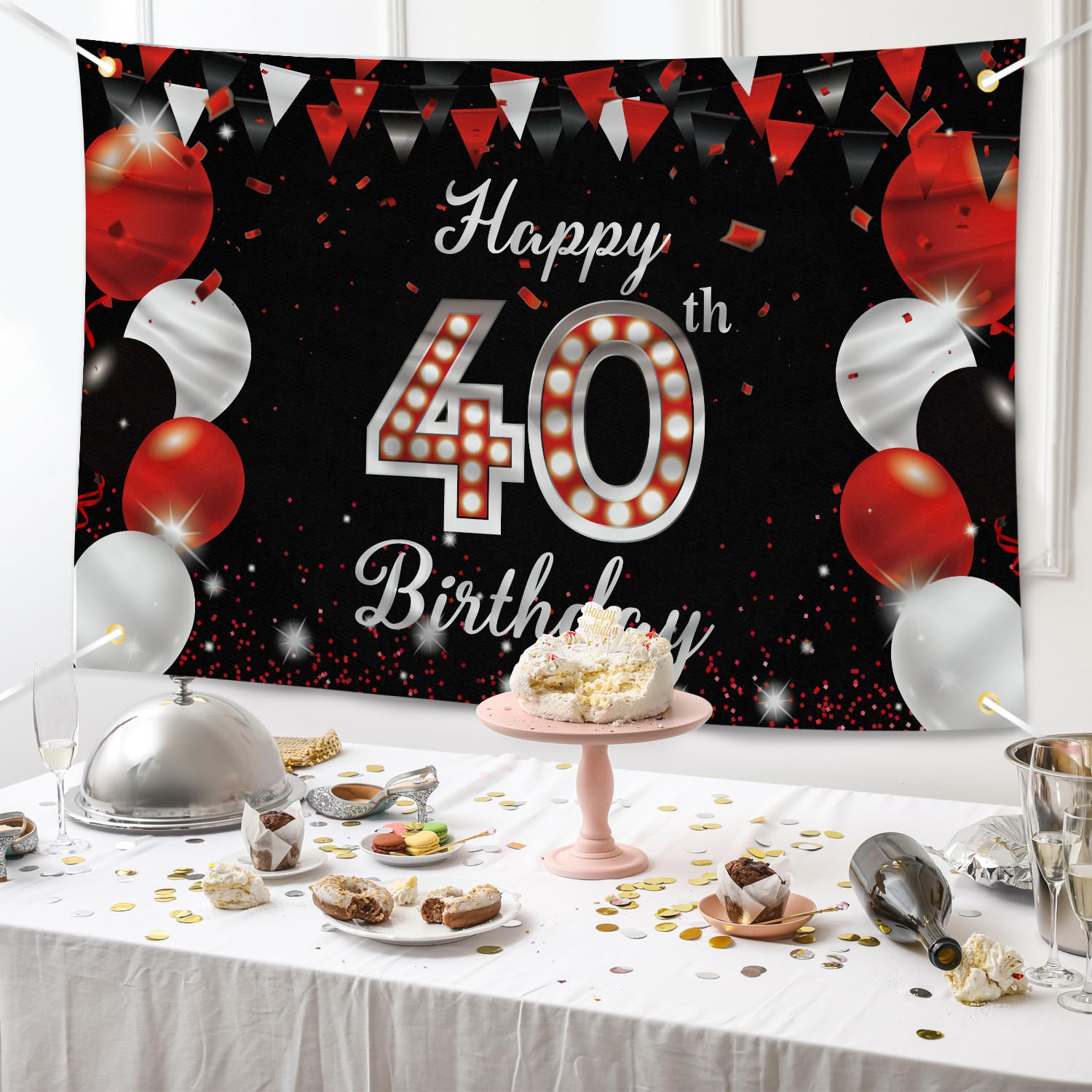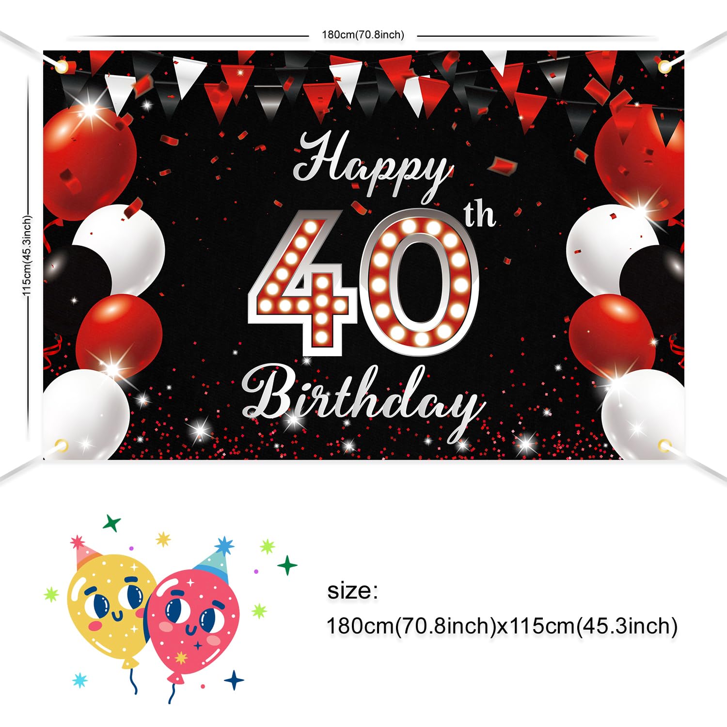 YOU WILL GET - 1 piece of red black Happy 40th Birthday banner (70.8 X 45.3 inches / 180 X 115 cm) and 1 piece of 33 ft long string.