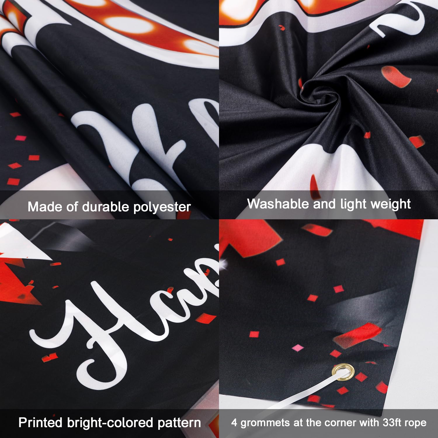 EASY TO USE - All four corners of the banner have grommets made of solid copper. To decorate your party, simply use the rope that comes with and hang it as a wall background, dessert table decorations or a photo backdrop.