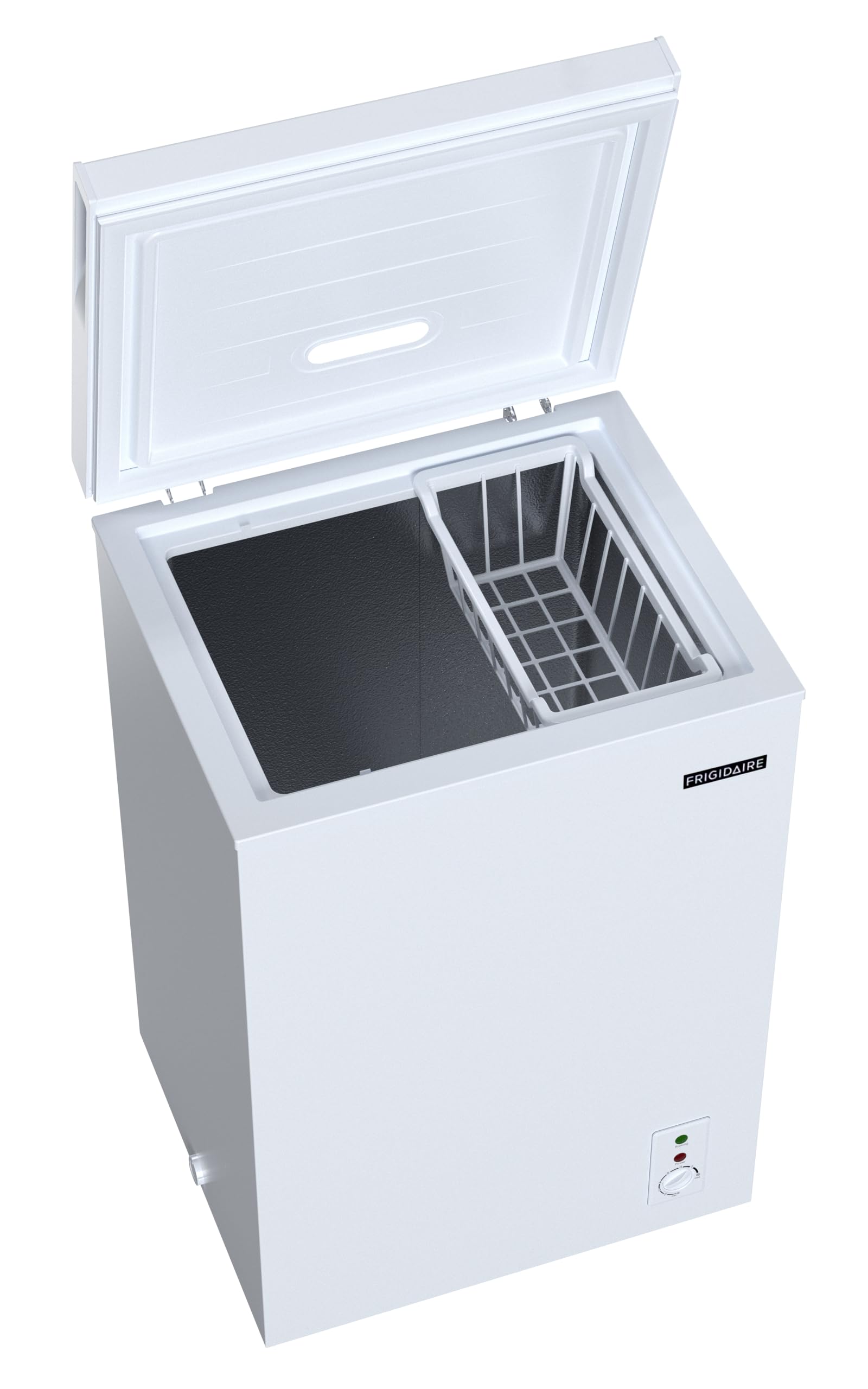 The FRIGIDAIRE Chest Freezer gives you the extra freezer space you're looking for your frozen food needs at 9.0 cu. ft. Perfect size for extra freezer storage if you do not have too much space. Single flip-up lid for easy access and a convenient removable storage basket enables you to utilize the space efficiently and keeps frequently used items near the top. The front, external temperature controller lets you easily monitor and adjust the internal temperature as needed. Defrost water drain ensures a clear path for water to travel during defrosting.