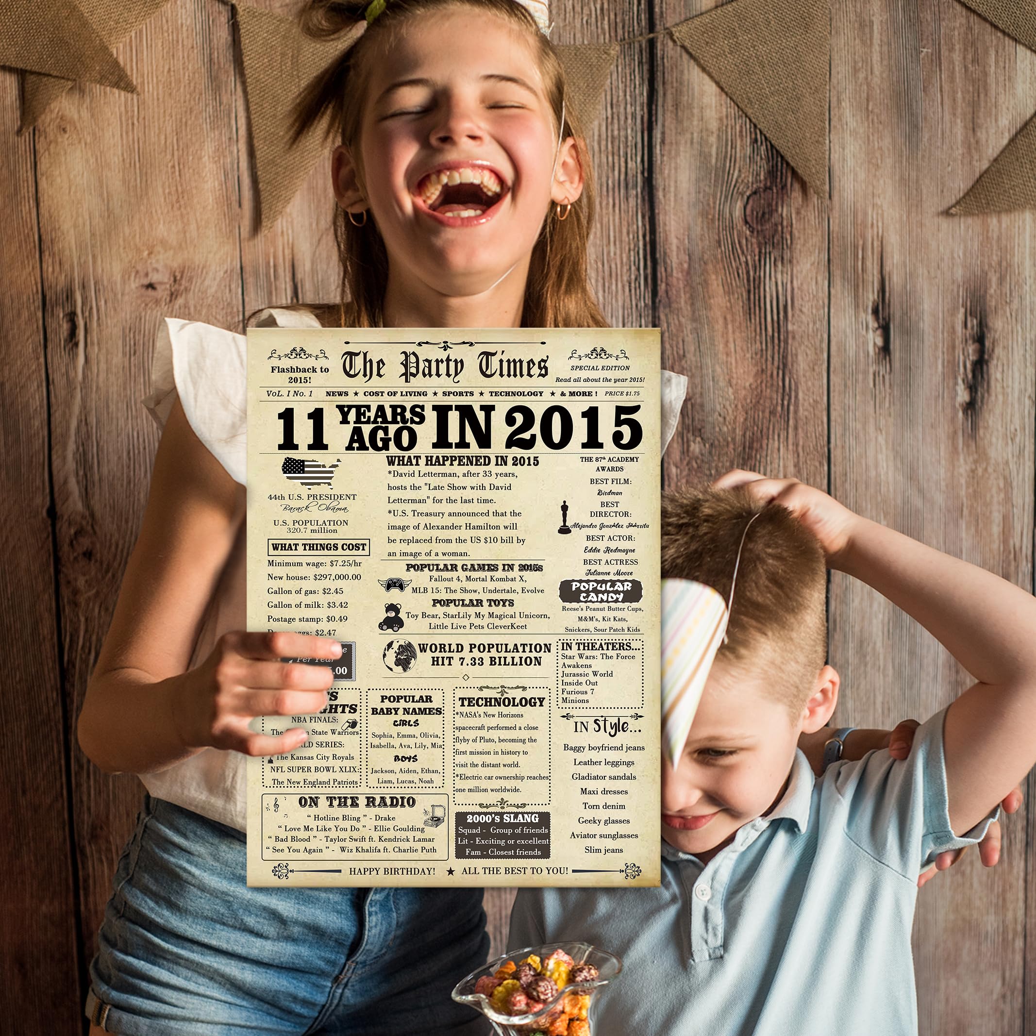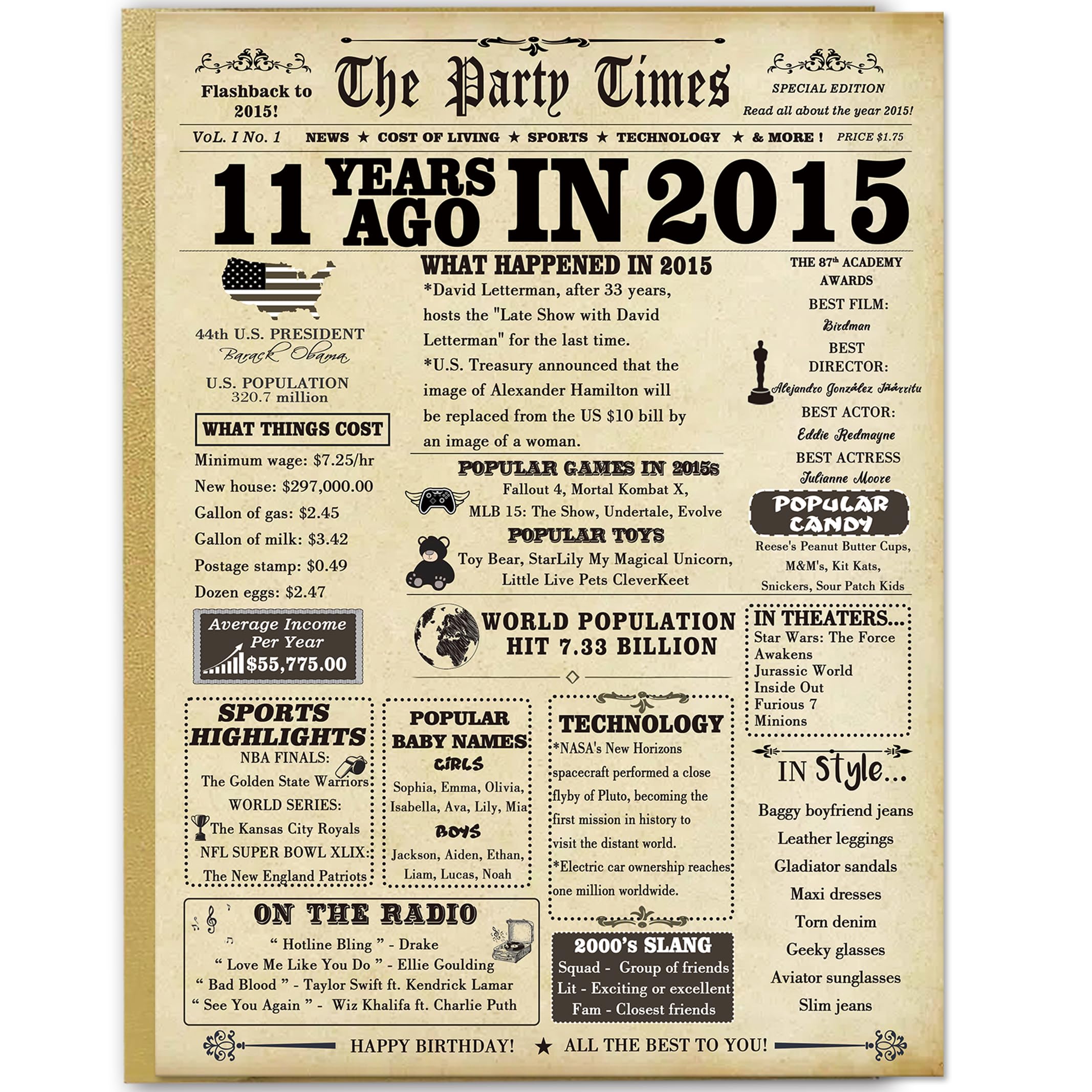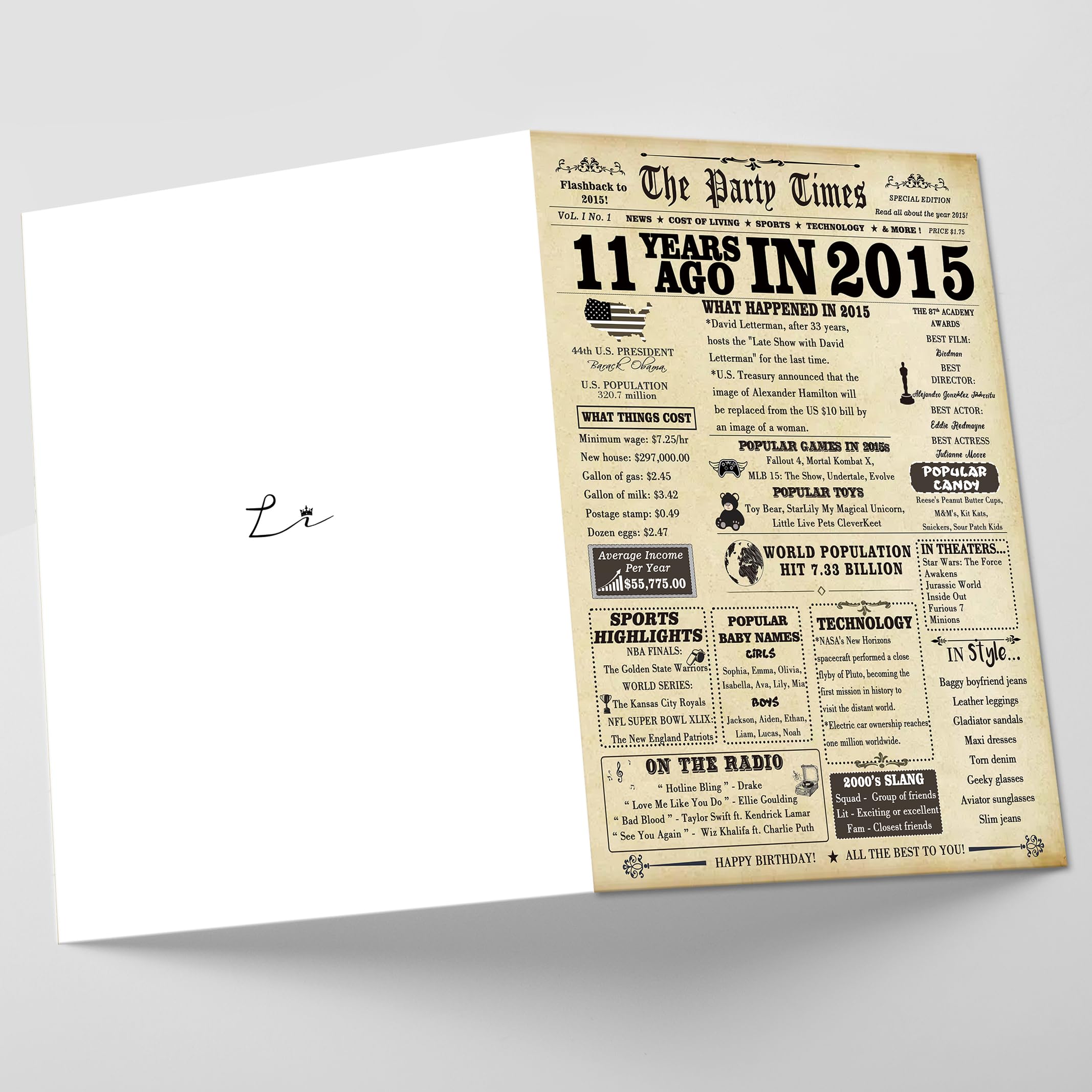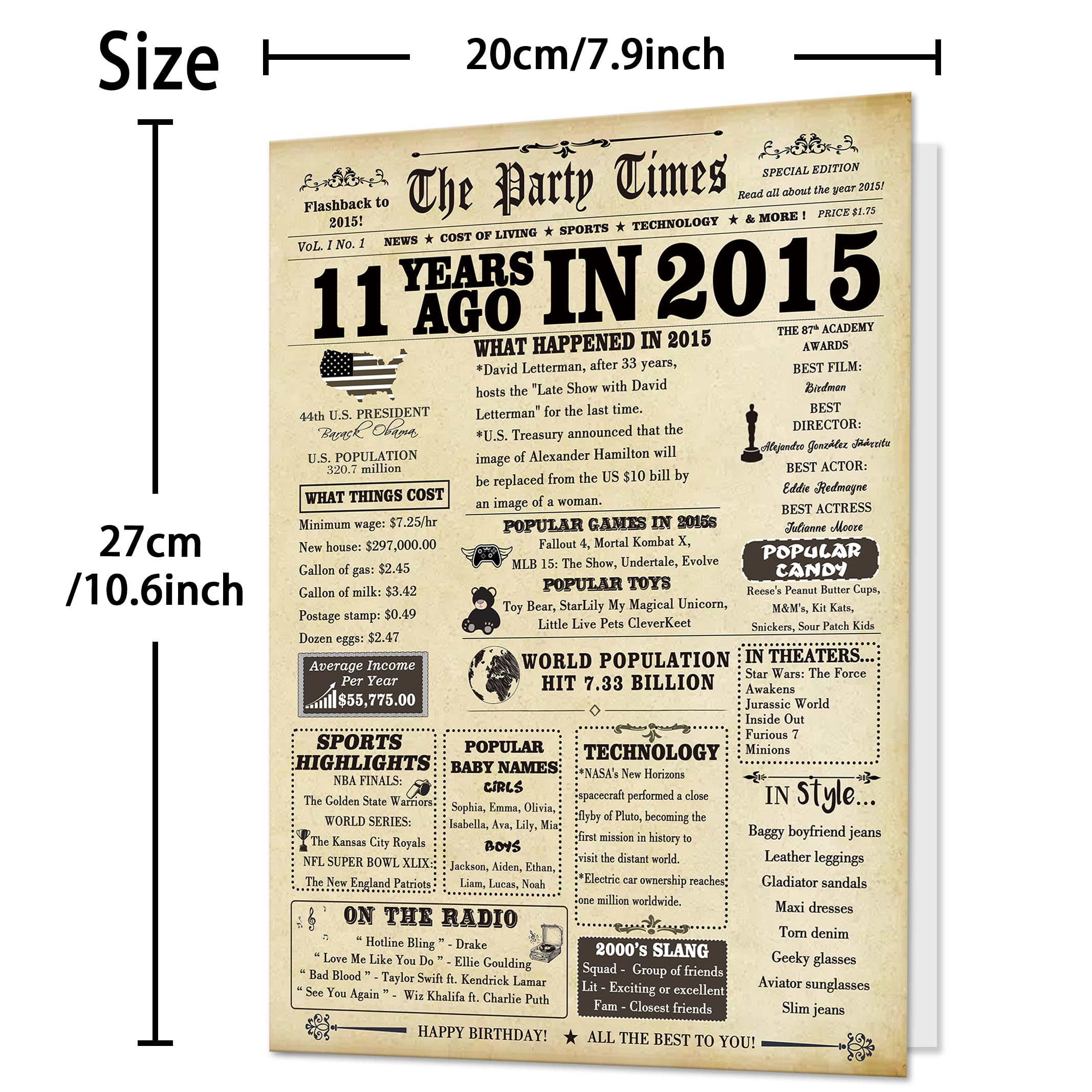 【11th Birthday Gifts】: This cute 11th birthday card in creative vintage design, The birthday card is filled with some interesting stories about your born year, which can helps you recall the past with family or friend, prepare a commemoration significance gift for your recipient