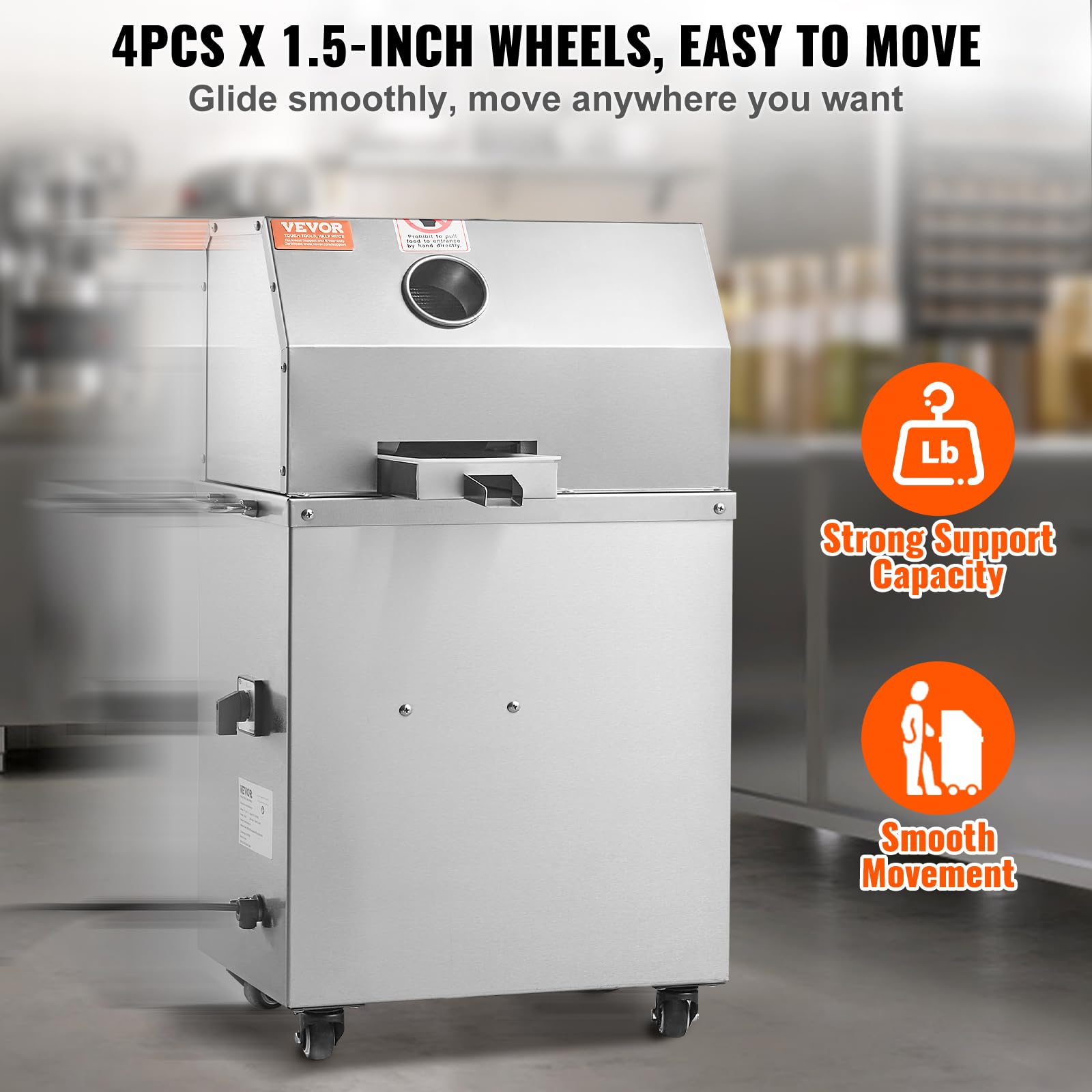 Movable, Practical, and Versatile: Our movable sugarcane juicer squeezer comes with 4 wheels, making it easy to move and suitable for various settings: beverage shops, outdoor stalls, fruit stores, hotel kitchens, etc. Enjoy the delicious sugarcane juice anytime, anywhere.