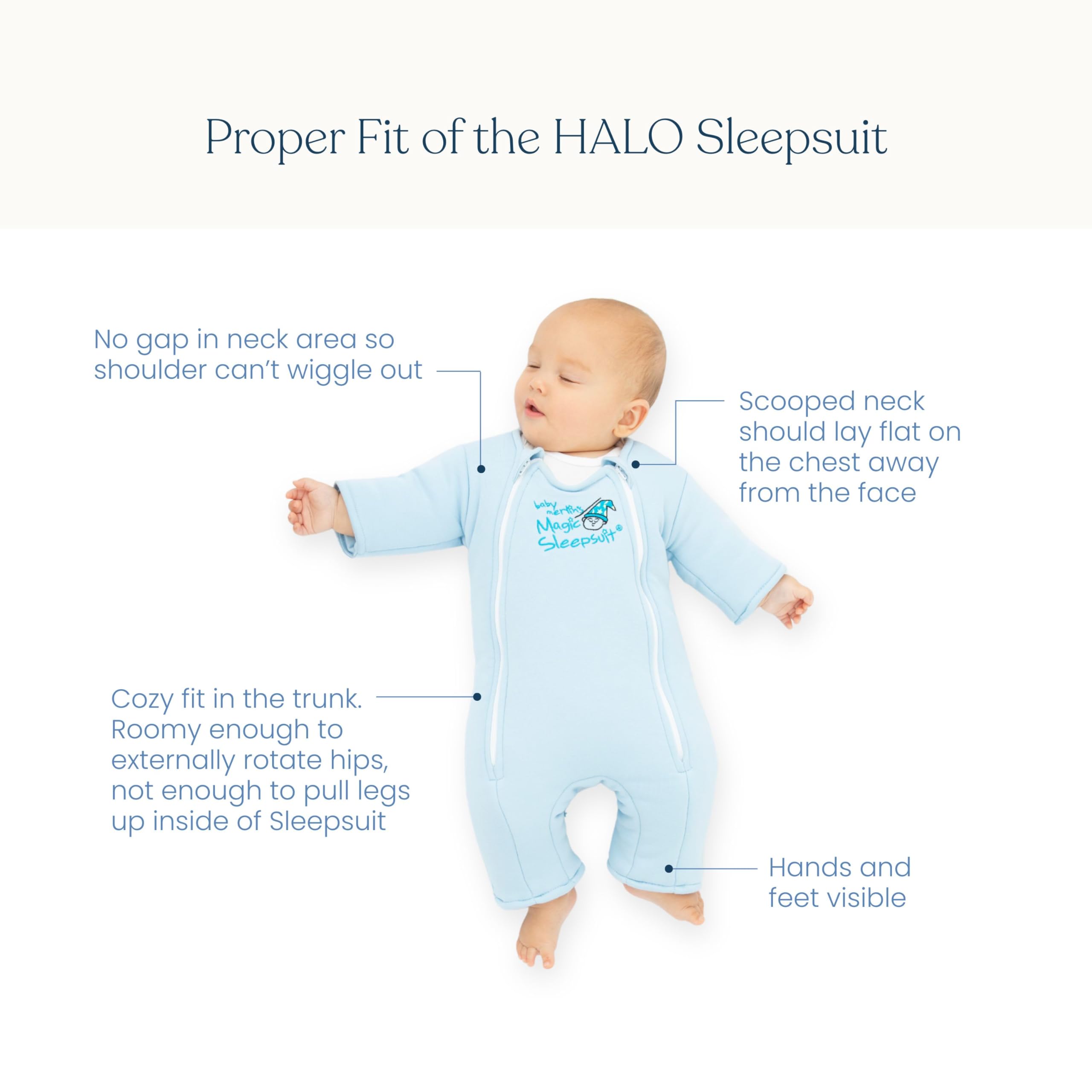 USE SAFELY – For back sleeping in a bare crib only. Discontinue use when baby shows signs of rolling over or exceeds size range (Small: 12–18 lbs, Large: 18–21 lbs).