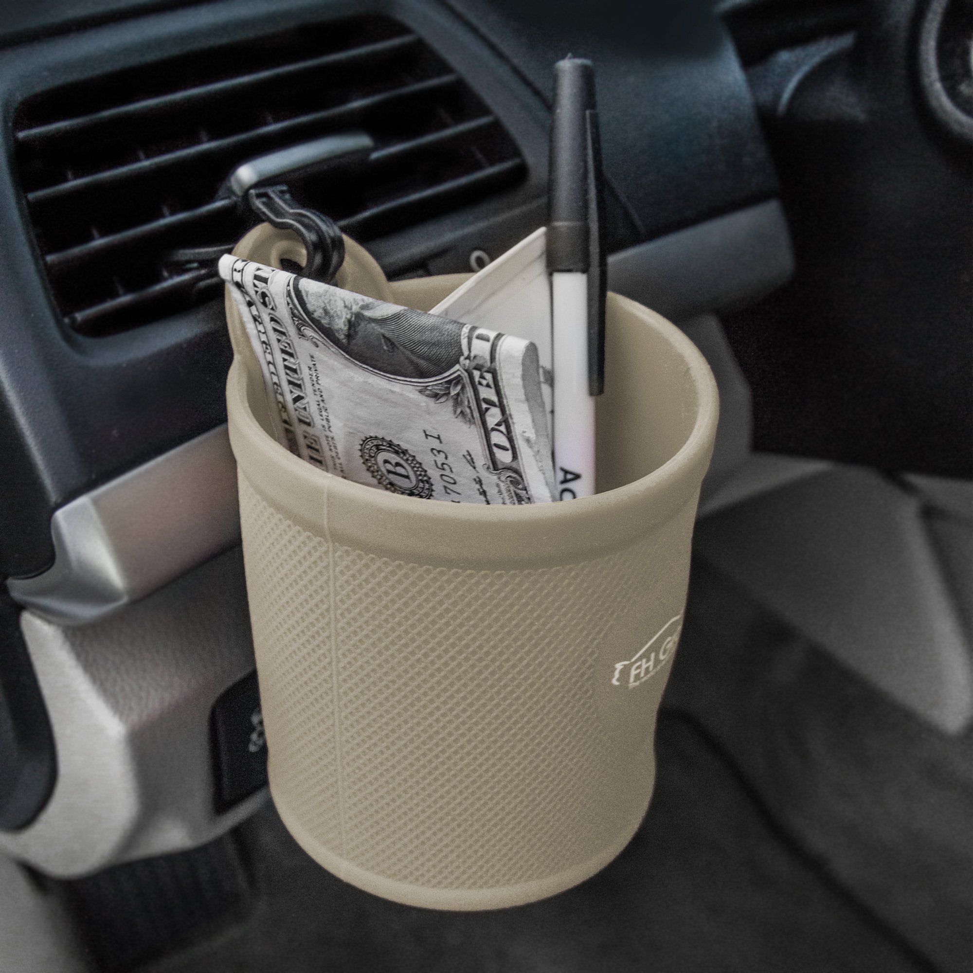 Keep your vehicle clutter free with this simple and easy to install silicone cup and cell phone holder. Simply clip right onto your car's air vent or hang on any other flat surface on your vehicle. Great for water bottles, loose change, sunglasses, and other small items that can easily get lost in your car's interior. Our silicone cup holder will keep your car clean and neat and allow you to have everything you need right within arm's reach.