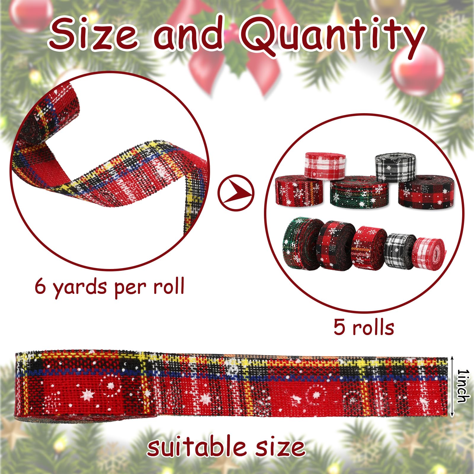 What You Will Get - 5 rolls of Christmas themed ribbon, each has a different design, sufficient quantity and rich styles can be applied to many occasions and can be made into many crafts.