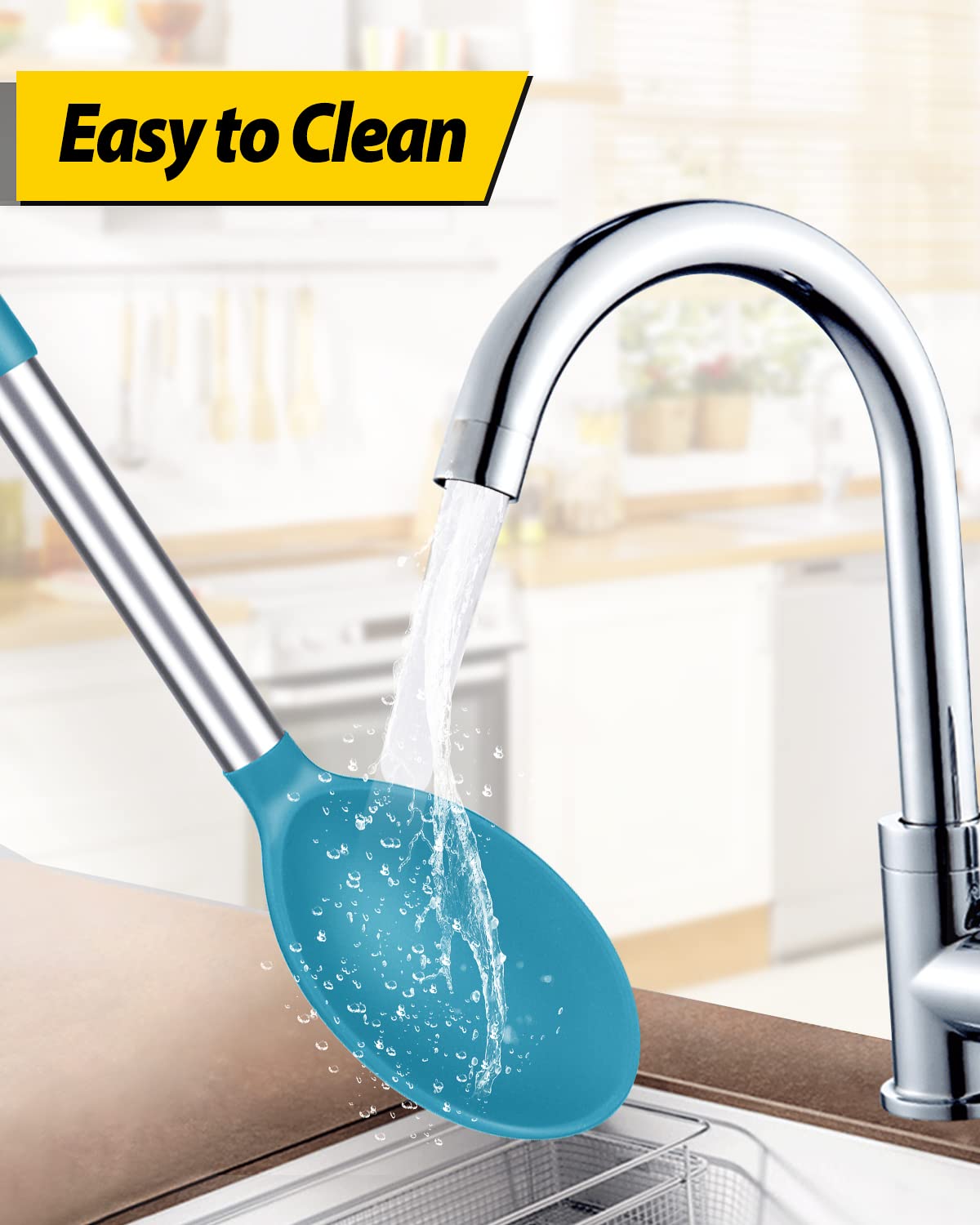 More Safe and Healthy : Our silicone spoons are made of food-grade silicone, free of BPA;Even at high temperatures, there is no need to worry about melting or deforming;And the soft silicone head won't scratch the coating, it can better protect your pot