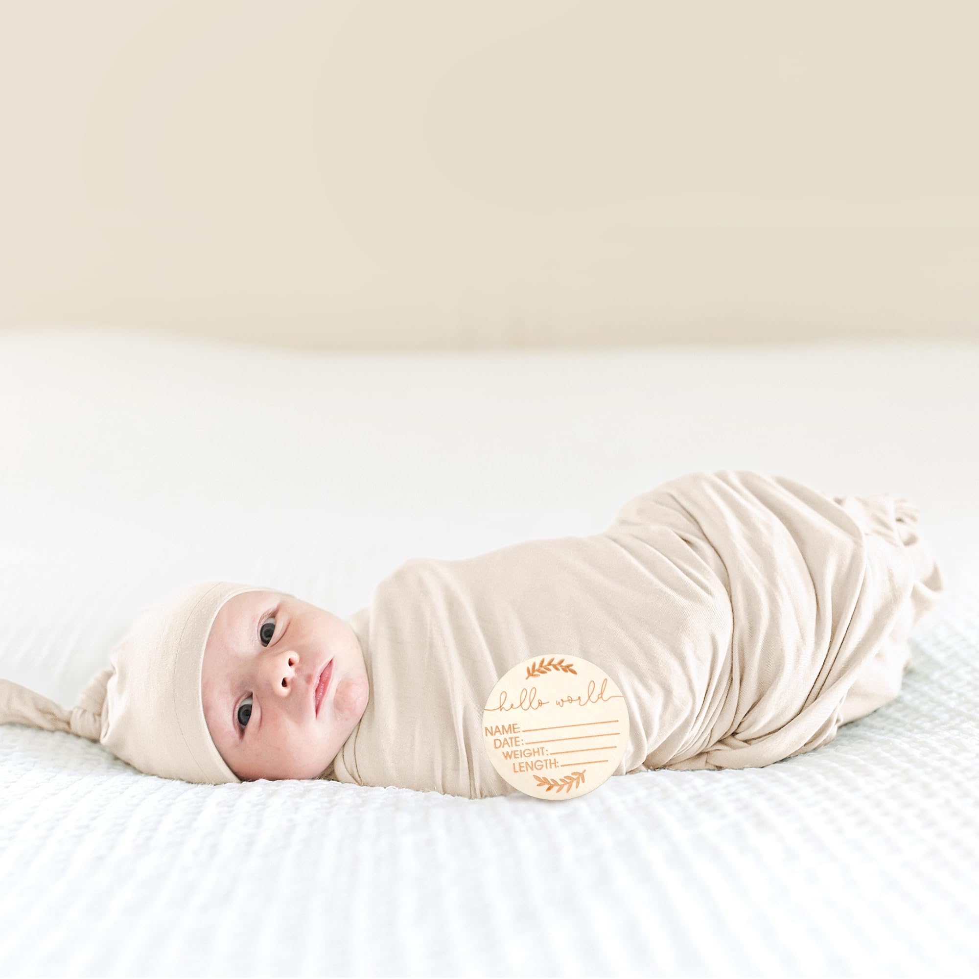 Personal Lasting Keepsake: Elevate your gift into a cherished keepsake by incorporating the included a name sign, allowing you to capture and commemorate the unique details of the newborn. This transforms the swaddle set into a lasting symbol of love and thoughtfulness