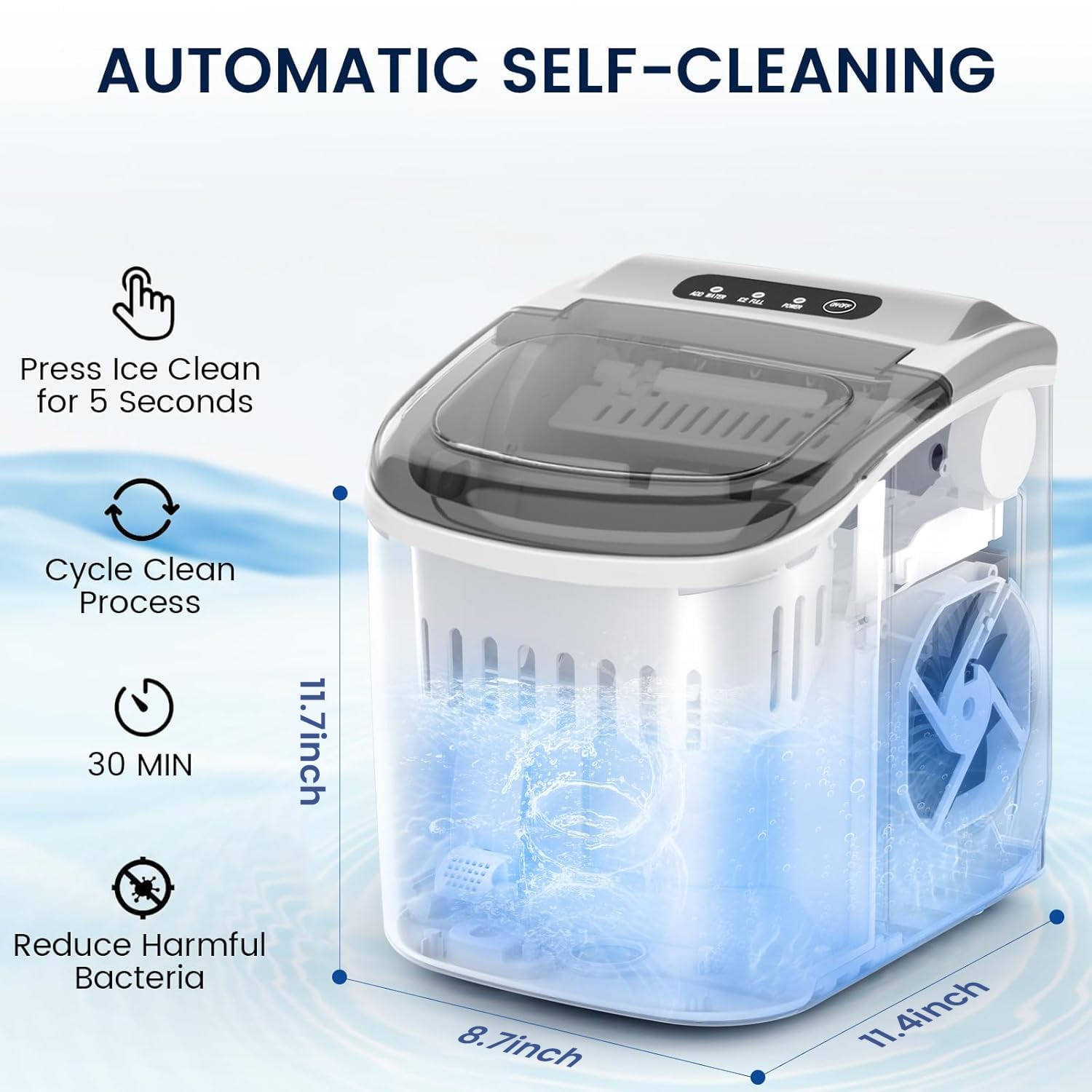 Portable and Space-Saving: This ice maker has a compact design and comes with a handle, making it easy to carry. The ice maker weigh is 14.56 pounds.