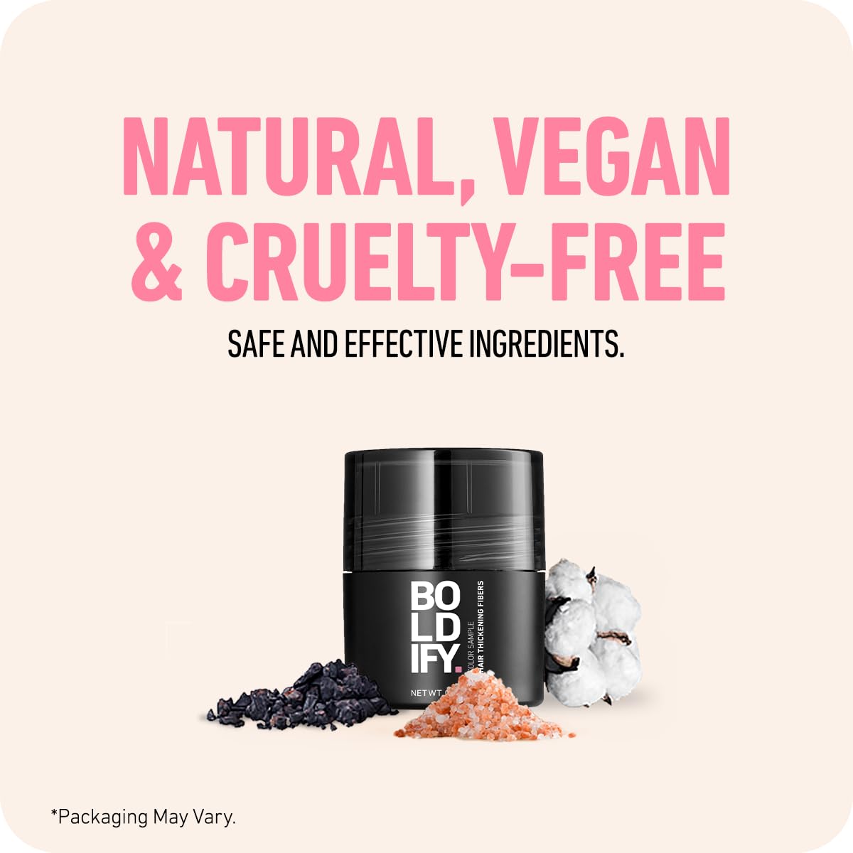 CLEANER AND MORE AFFORDABLE: BOLDIFY's formula surpasses competitors with its simplicity and affordability. Our cruelty-free Hair Building Fibers are produced in an ISO 22716 certified facility, ensuring high quality at a better price, without keratin or artificial preservatives.