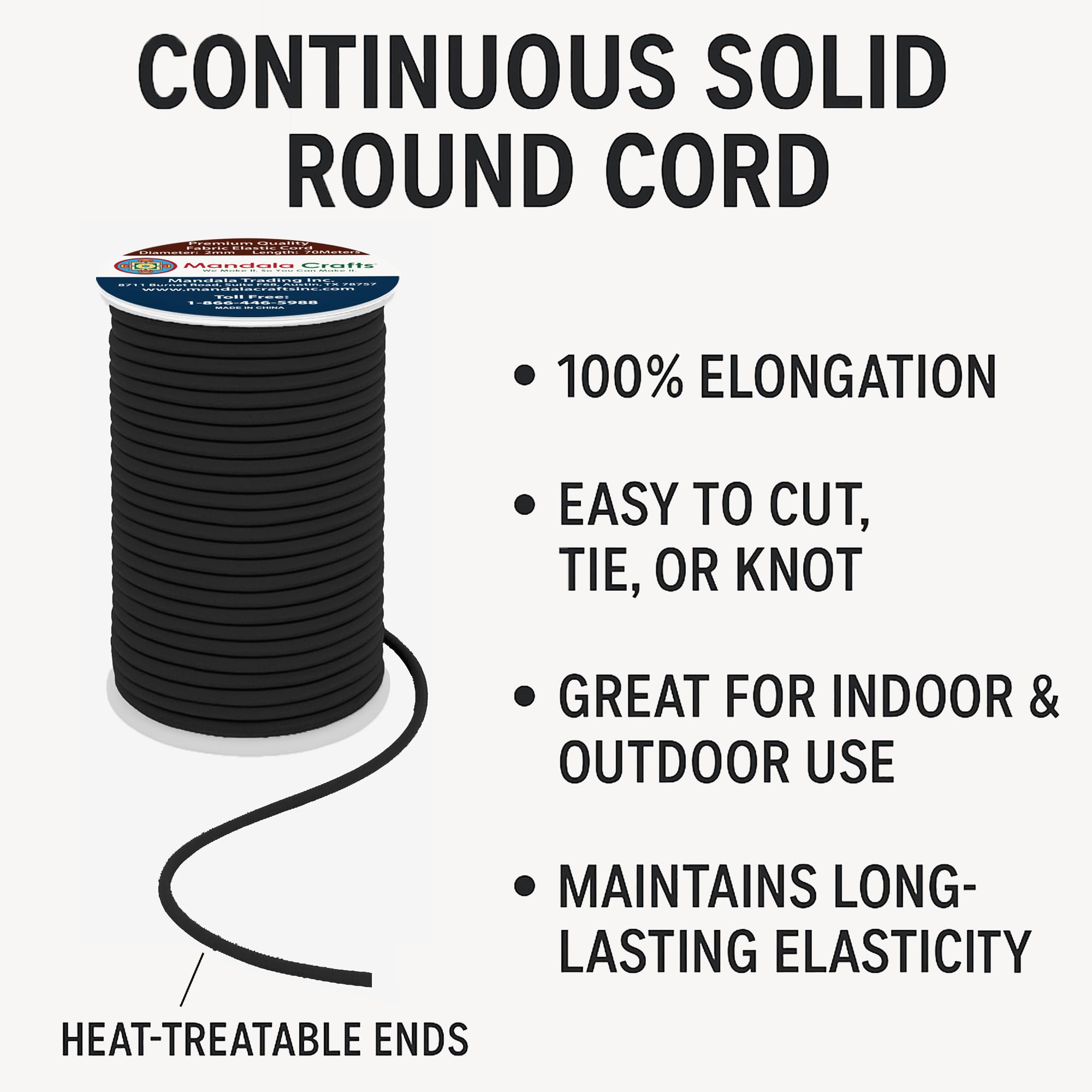 Black Round Elastic Cording: The soft & flexible thick elastic cord made from nylon & rubber is colorfast, washable, & dryable. As strong as rubber string, the elastic rope cord serves as durable stretchy sewing string and elastic craft string.